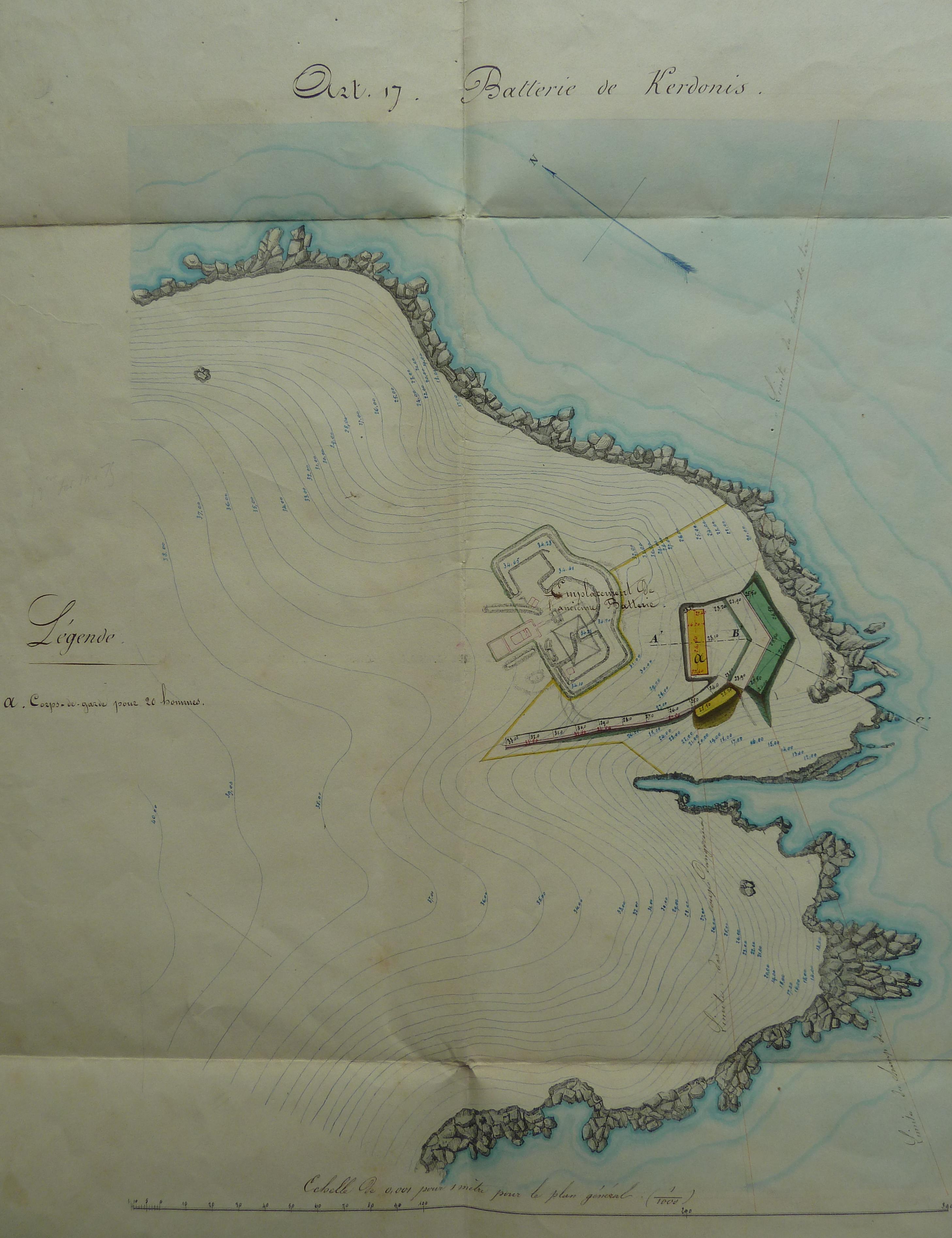 Service historique de la Défense, département Armée de Terre, Vincennes. Archives du Génie ; Article 8, Places françaises et d'Algérie : 1 VH 296, Place de Belle-Île-en-Mer, projets et dépenses annuels, 1860-1861. Direction du Génie de Brest, Place de Belle-Ile, feuille n° 1 des projets pour 1860-1861, 20 novembre 1859.