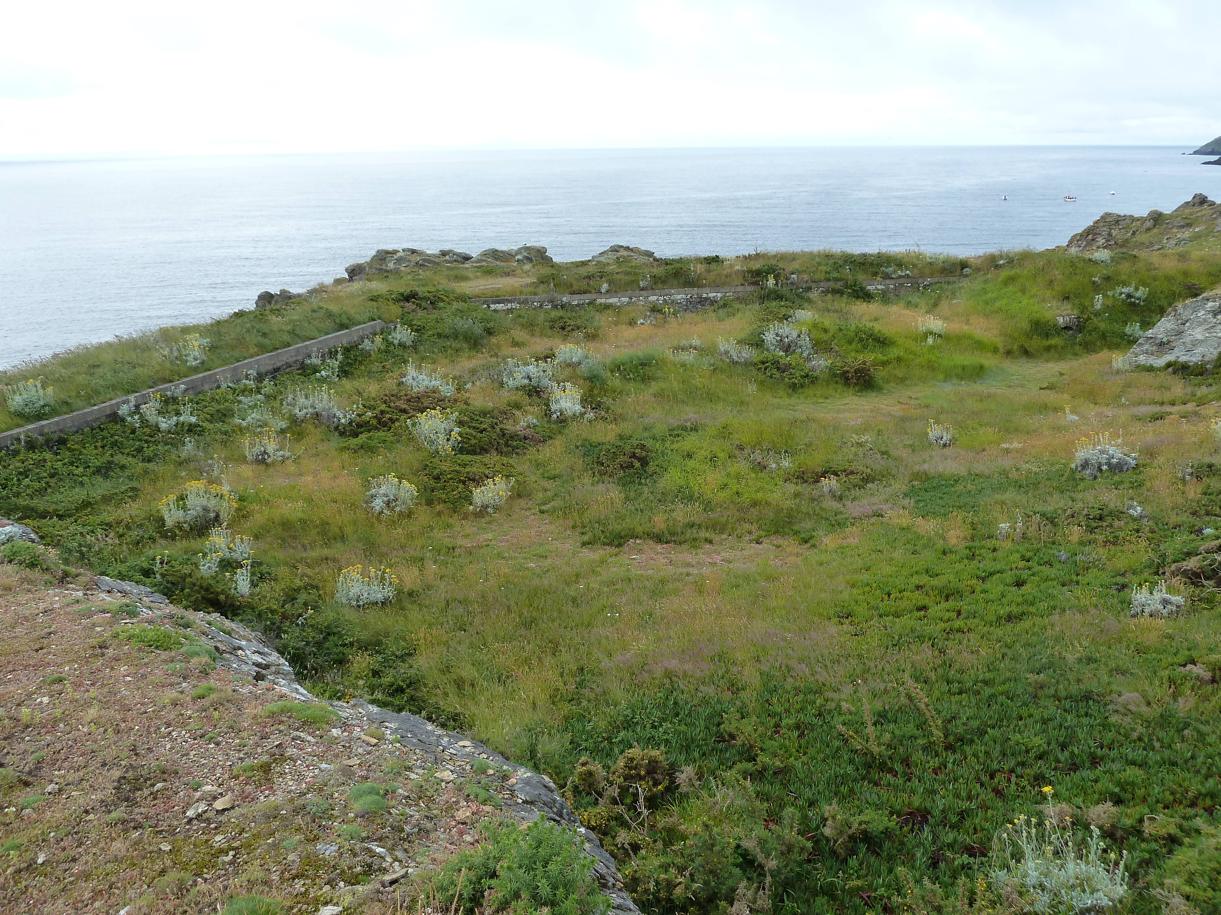 Locmaria, batterie de Kerdonis, terre-plein et mur de genouillère de la batterie.Immatriculation