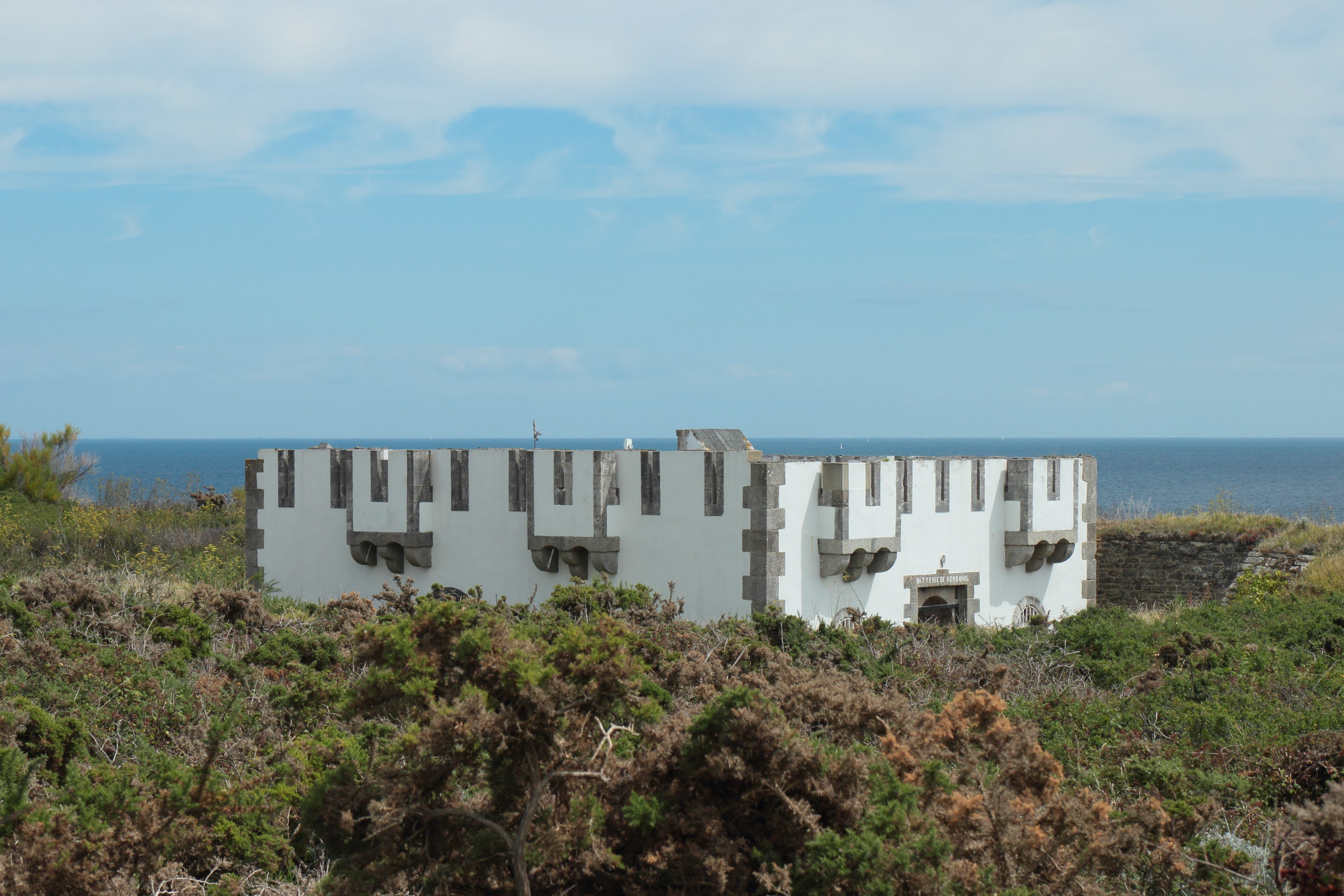 Locmaria, batterie de Kerdonis, corps de garde crénelé, vue depuis l'ouest.Immatriculation