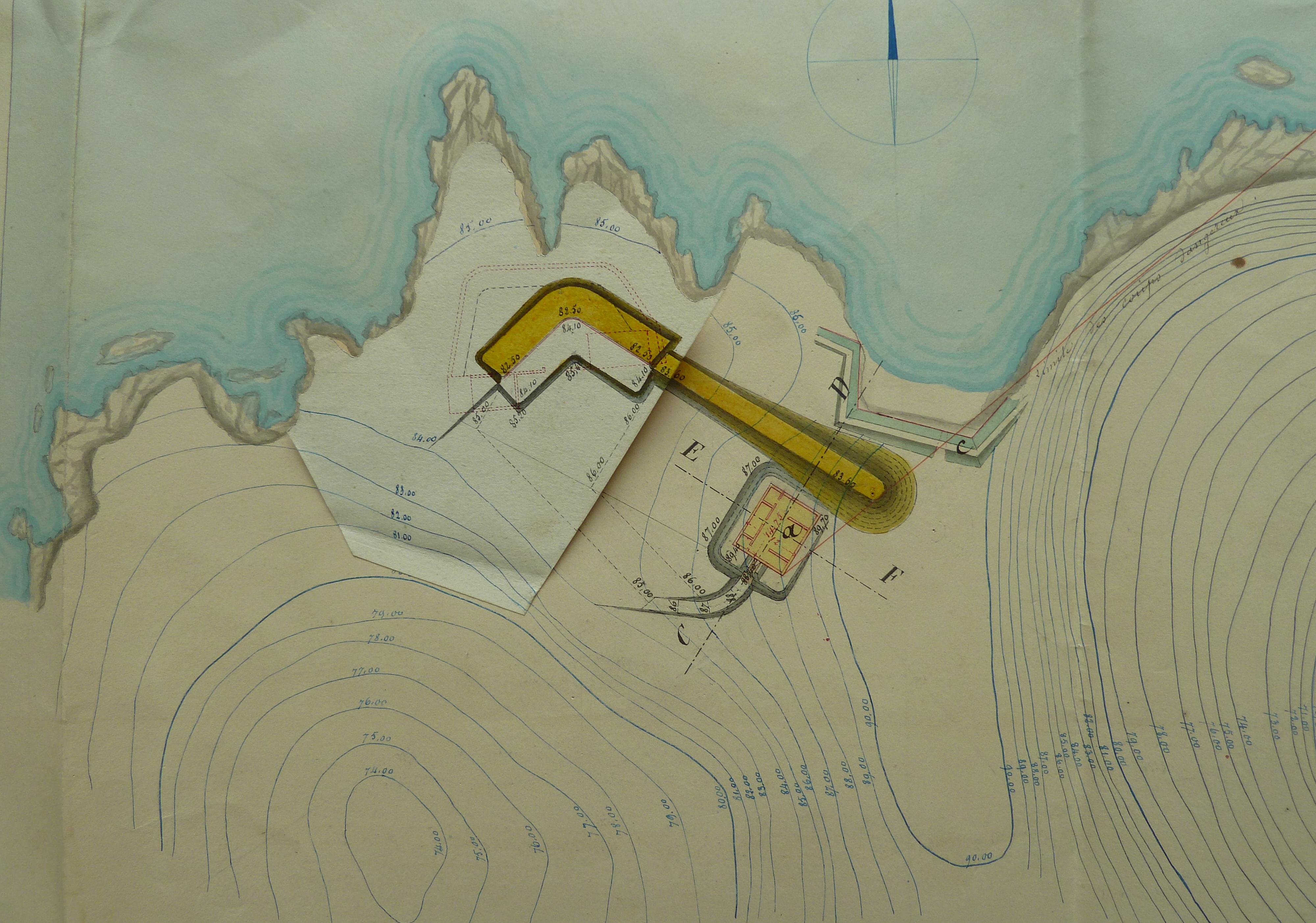 Service historique de la Défense, département Armée de Terre, Vincennes. Archives du Génie ; Article 8, Places françaises et d'Algérie : 1 VH 294, Place de Belle-Île-en-Mer, projets et dépenses annuels, 1854-1857. Direction du Génie de Brest, Place de Belle-Ile, feuille n° 11 des projets extraordinaires pour 1857-1858, batteries de Kerdonis, de La Biche et de La Ferrière, 19 février 1857 [papillote de correction du 18 mars 1857].