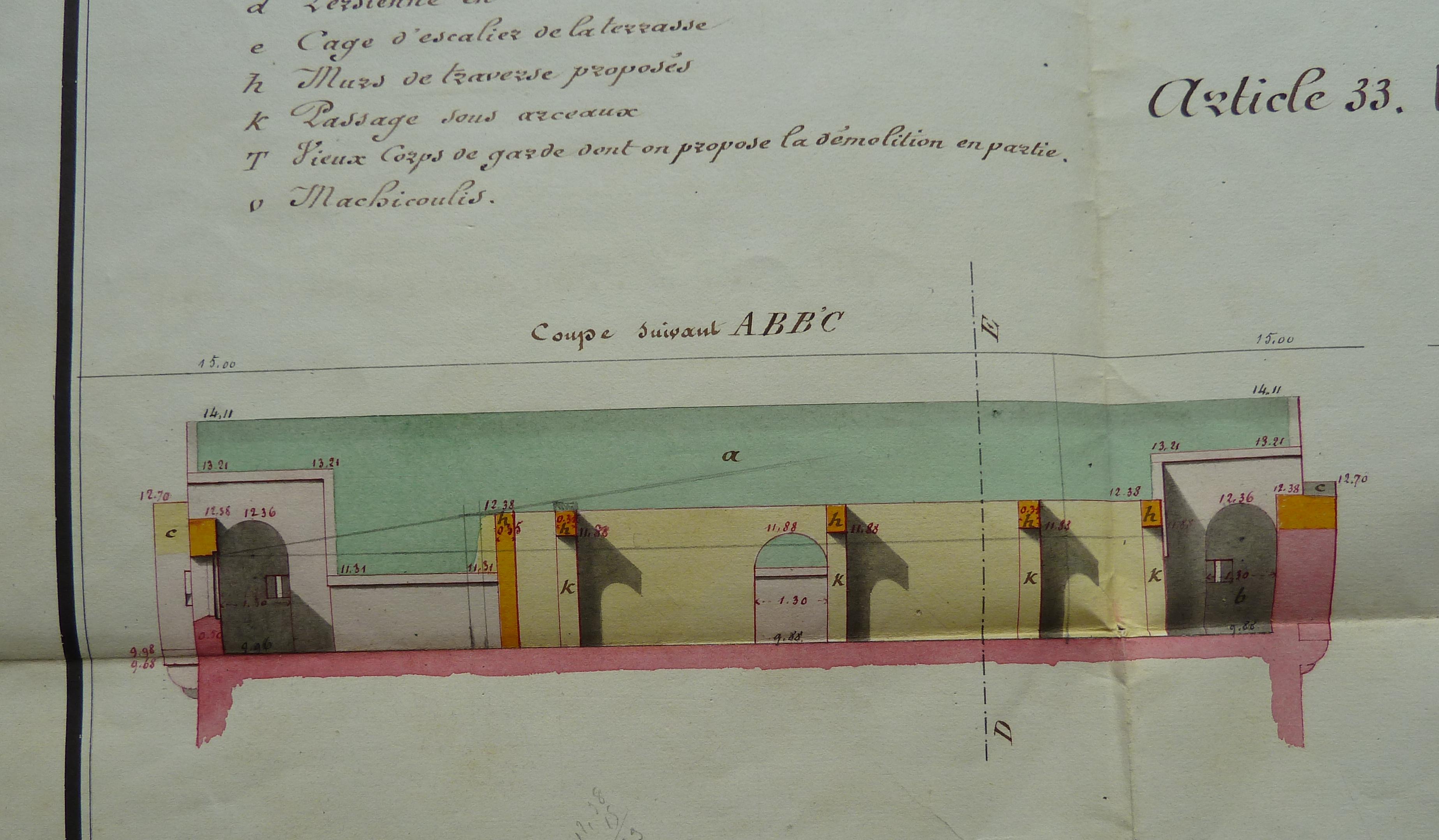 Service historique de la Défense, département Armée de Terre, Vincennes. Archives du Génie ; Article 8, Places françaises et d'Algérie : 1 VH 296, Place de Belle-Île-en-Mer, projets et dépenses annuels, 1860-1861. Direction du Génie de Brest, Place de Belle-Ile, feuille n° 13 des projets supplémentaires pour 1860-1861, batteries de La Ferrière et de La Biche, 24 novembre 1860.
