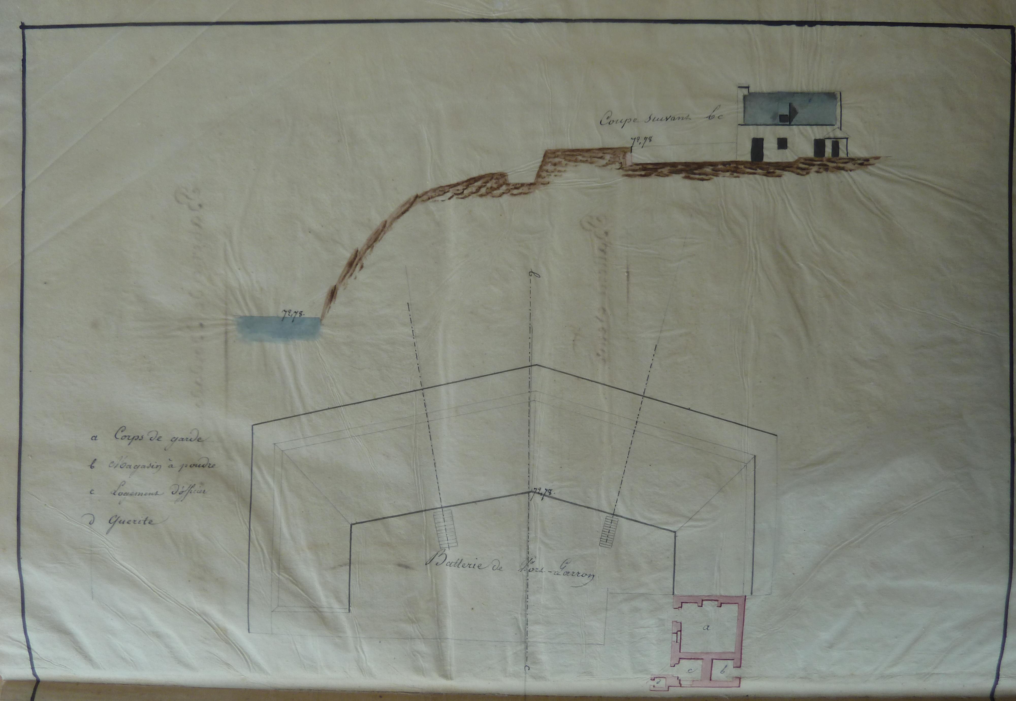 Archives départementales du Morbihan. Série Fi, Documents figurés ; 1 Fi 304, Notes topographiques, historiques et militaires sur chaque fort, redoute et batterie de la côte de Belle-Isle-en-mer, 1824.