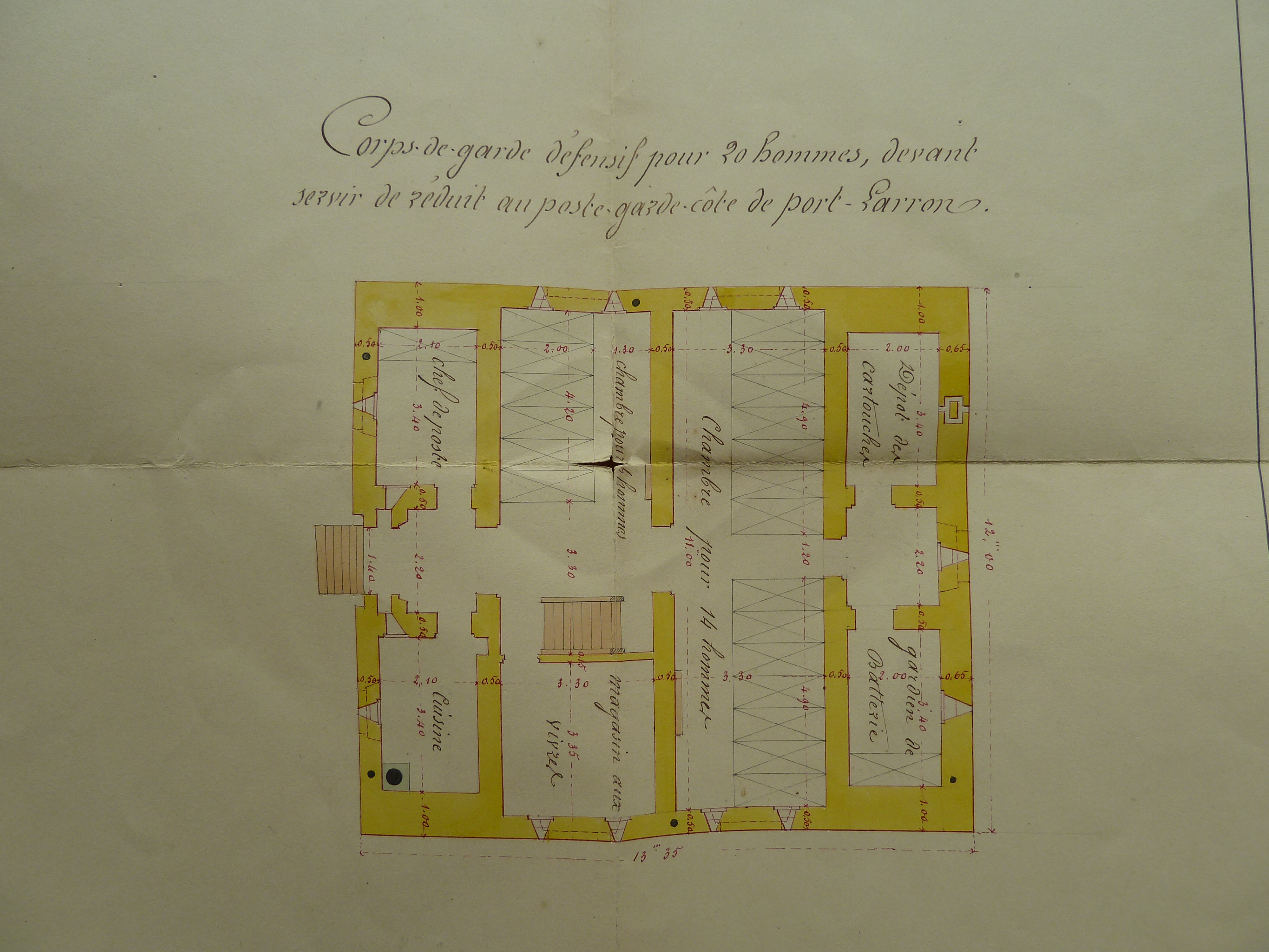 Service historique de la Défense, département Armée de Terre, Vincennes. Archives du Génie ; Article 8, Places françaises et d'Algérie : 1 VH 294, Place de Belle-Île-en-Mer, projets et dépenses annuels, 1854-1857. Direction du Génie de Brest, Place de Belle-Ile, feuille n° 13 des projets extraordinaires pour 1857-1858, batterie de la pointe de Ramonet et détails des modifications apportées aux corps-de-garde types, 19 février 1857.