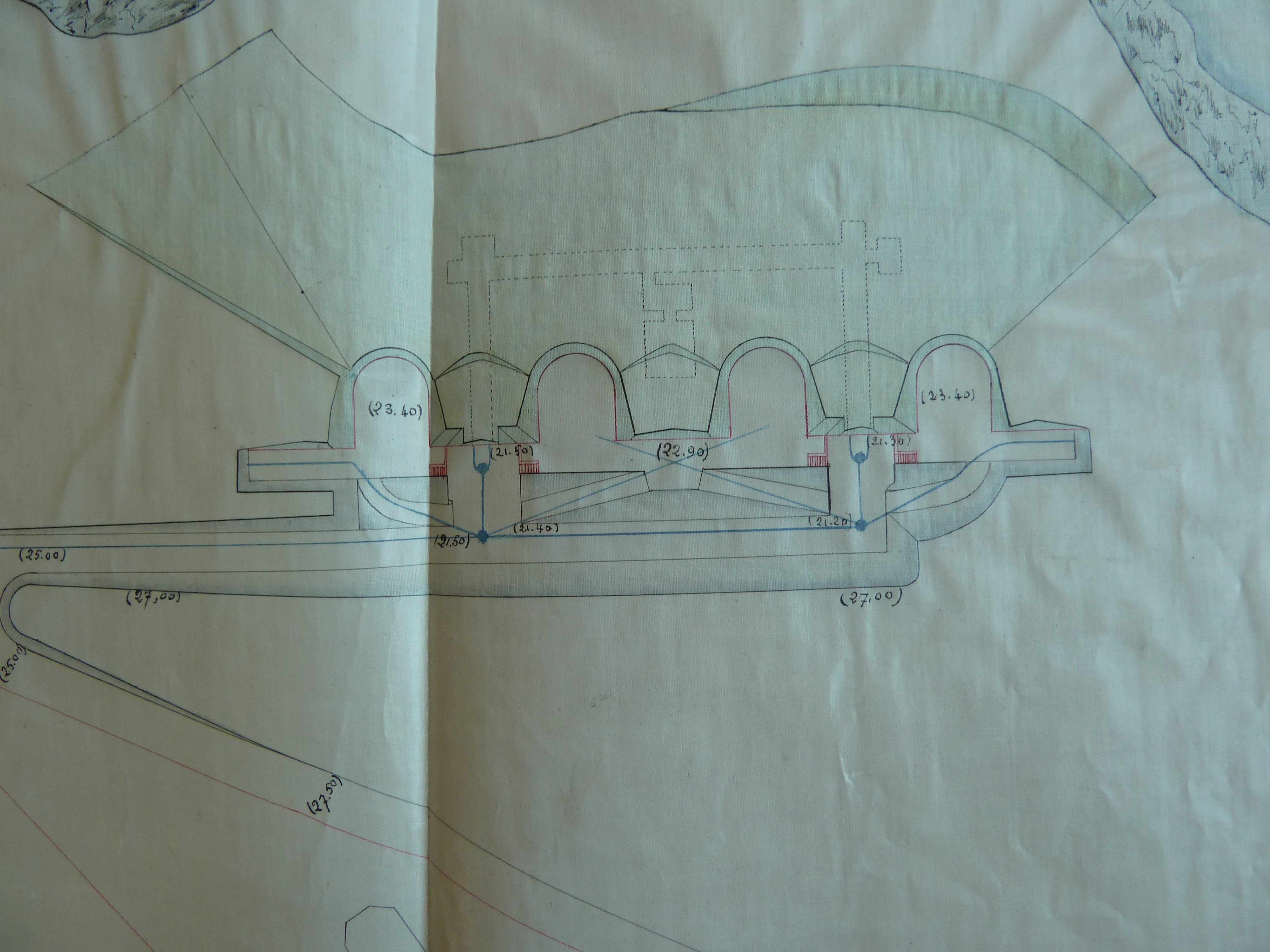 Service historique de la Défense, Département Armée de Terre, Vincennes. Archives de la Guerre, Troisième République ; Sous-série 7 N, État-major de l'Armée : 7 N 1904, Défense des fronts de mer, dossiers de l’inspection générale permanente d’armement des côtes - Atlantique : pièces collectives, Belle-Ile, Blaye, Bordeaux, Brest (1878-1912). Croquis joint au procès-verbal de conférence en date du 30 décembre 1894 relatif à l'emmagasinement des munitions dans les batteries de côte de Belle-Ile.