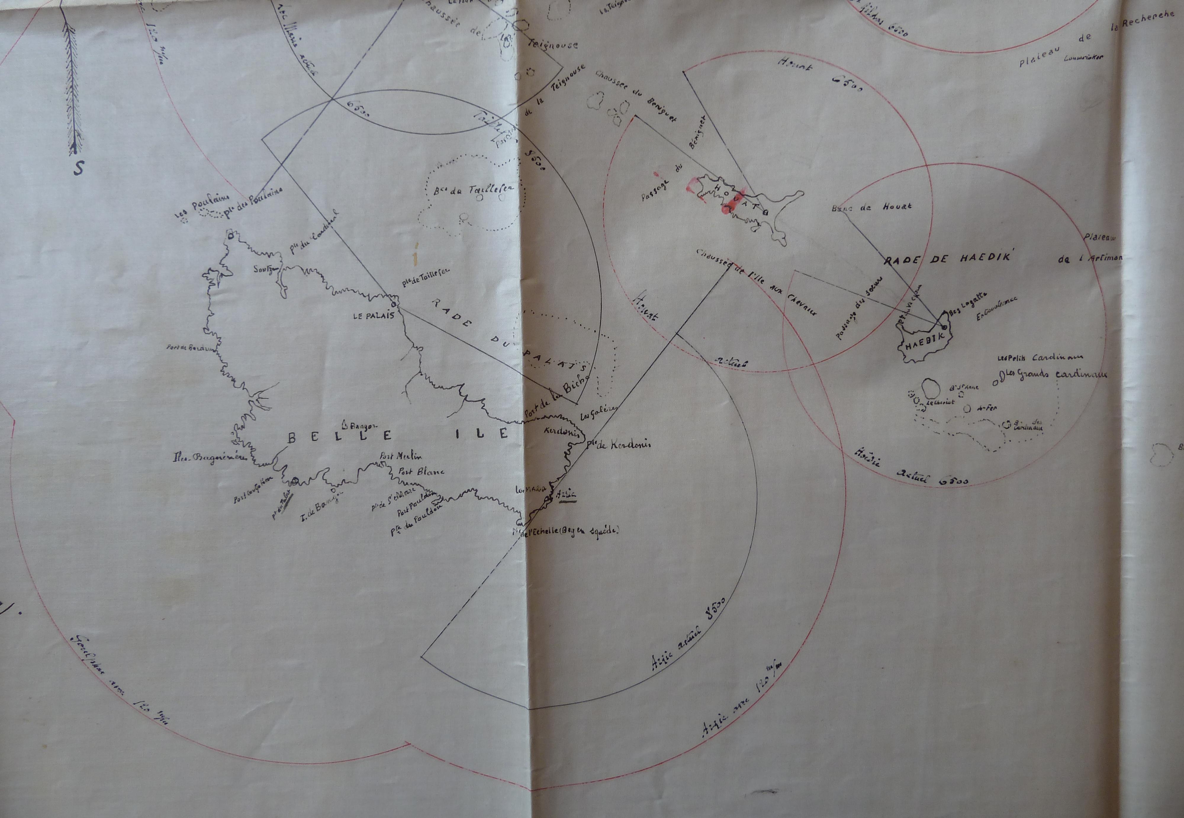 Service historique de la Défense, Département Marine, Vincennes. Archives de la Première Guerre mondiale ; Sous-série SS EE, Etat-major général, 5e section (défense du littoral) : SS EE 22, défense du littoral du 3e arrondissement maritime. Cartes des postes de défense (PDCSM) de Lorient, 1918.
