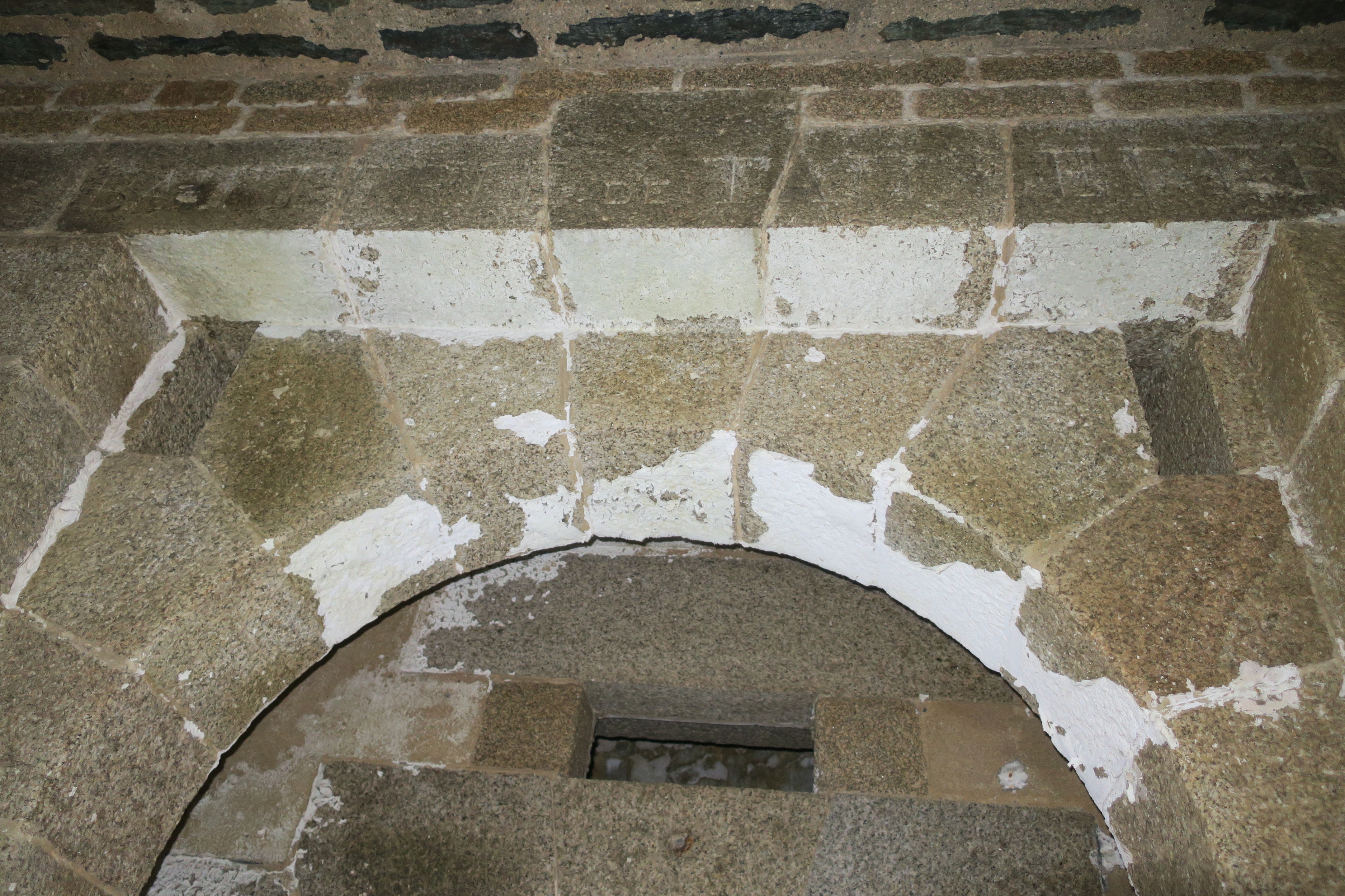 Le Palais, pointe de Taillefer, corps de garde crénelé, inscription au dessus de la porte.Immatriculation
