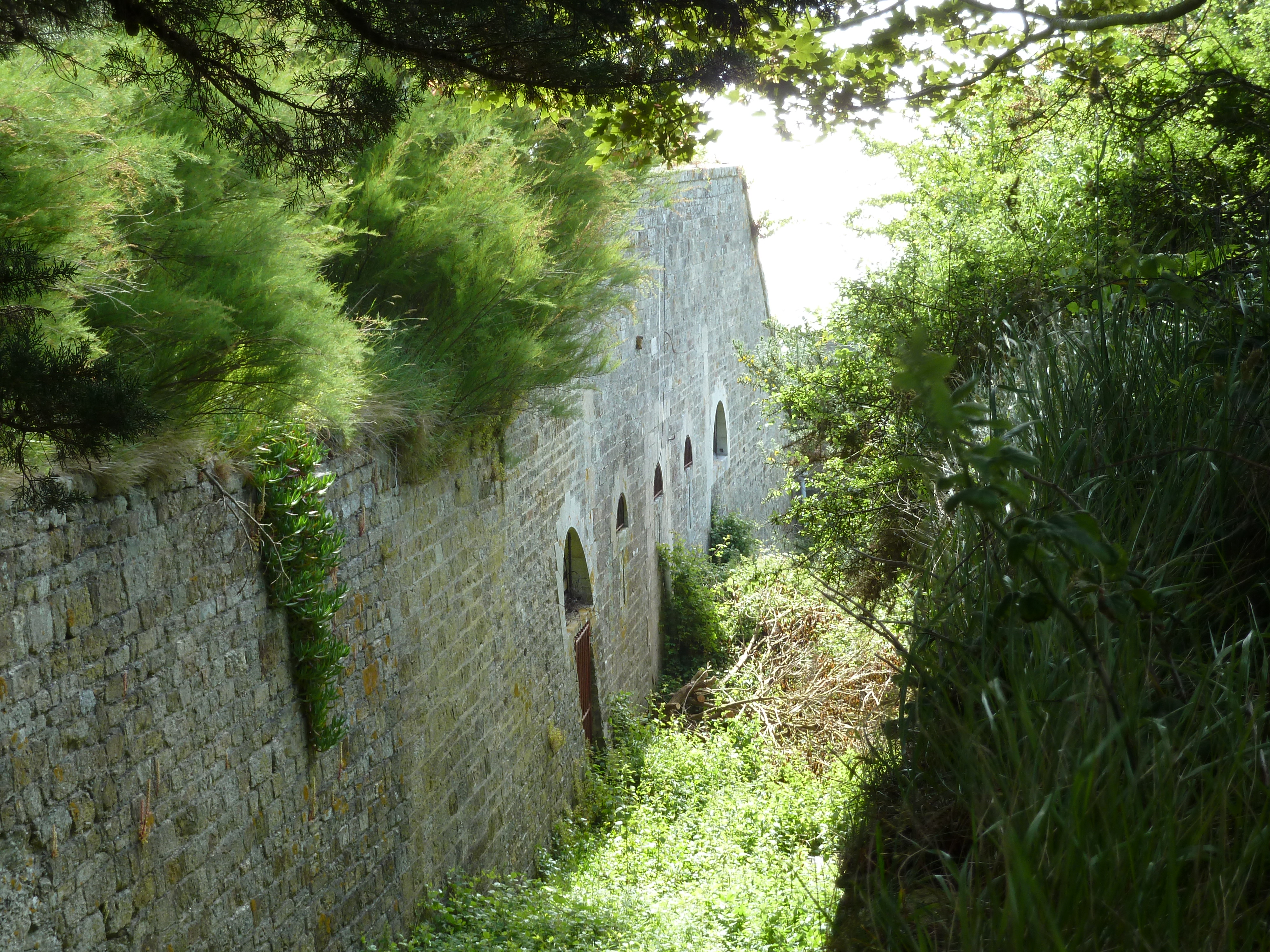 Le Palais, batterie du Gros Rocher, fossé de gorge et façade du corps de garde crénelé.Immatriculation