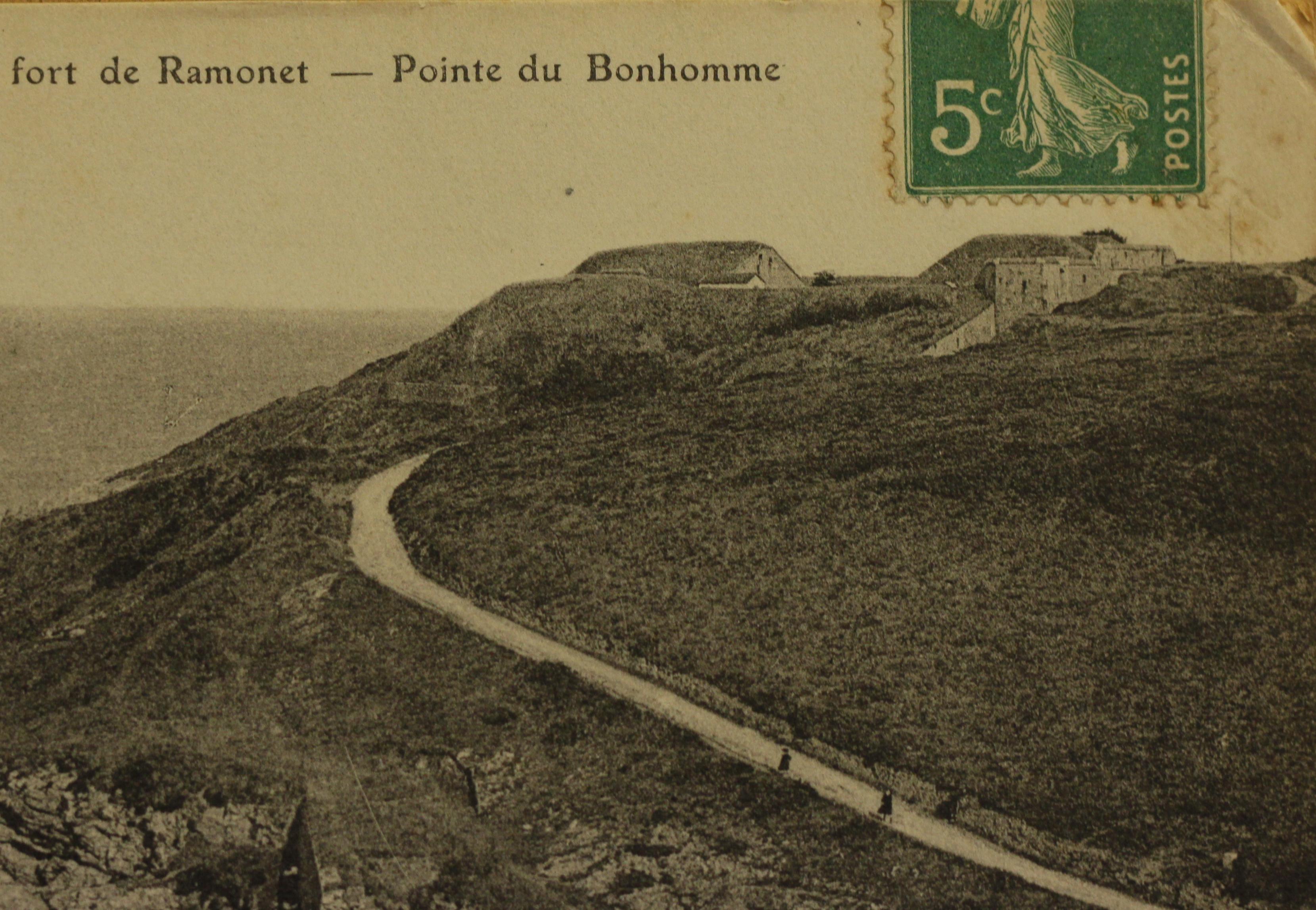 Le Palais, batterie de Ramonette, carte postale ancienne, détail.Immatriculation