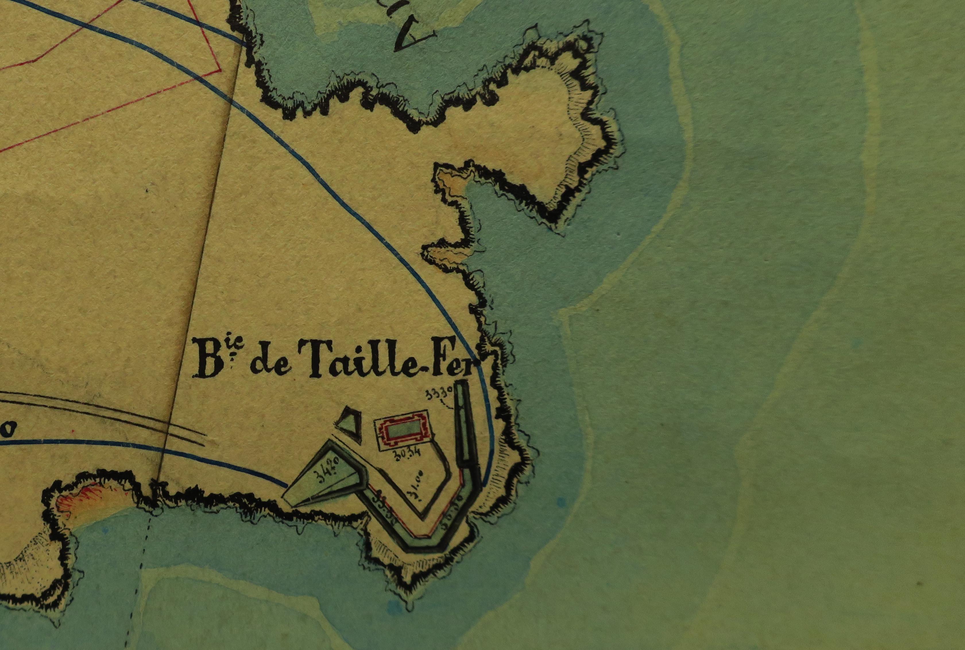 Service historique de la Défense, département Armée de Terre, Vincennes. Archives du Génie ; Article 8, Places françaises et d'Algérie : 1 VH 297, Place de Belle-Île-en-Mer, projets et dépenses annuels, 1862-1875. Direction du Génie de Brest, Place de Belle-Ile, feuille n° 1 des projets pour 1866-1867, 7 mars 1866.