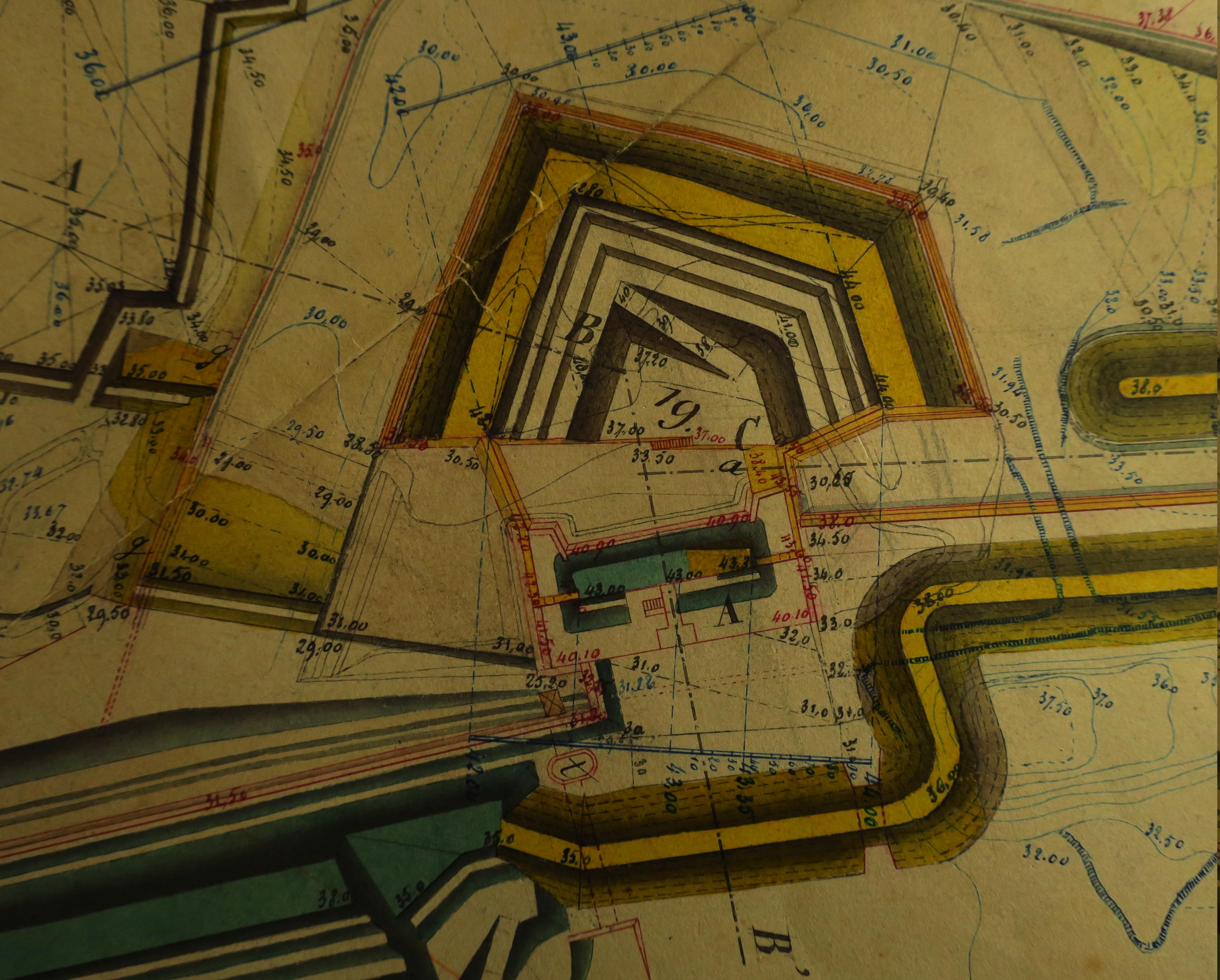 Service historique de la Défense, département Armée de Terre, Vincennes. Archives du Génie ; Article 8, Places françaises et d'Algérie : 1 VH 295, Place de Belle-Île-en-Mer, projets et dépenses annuels, 1858-1859. Direction du Génie de Brest, Place de Belle-Ile, feuille n° 13 des projets pour 1858-1859, 8 décembre 1858.