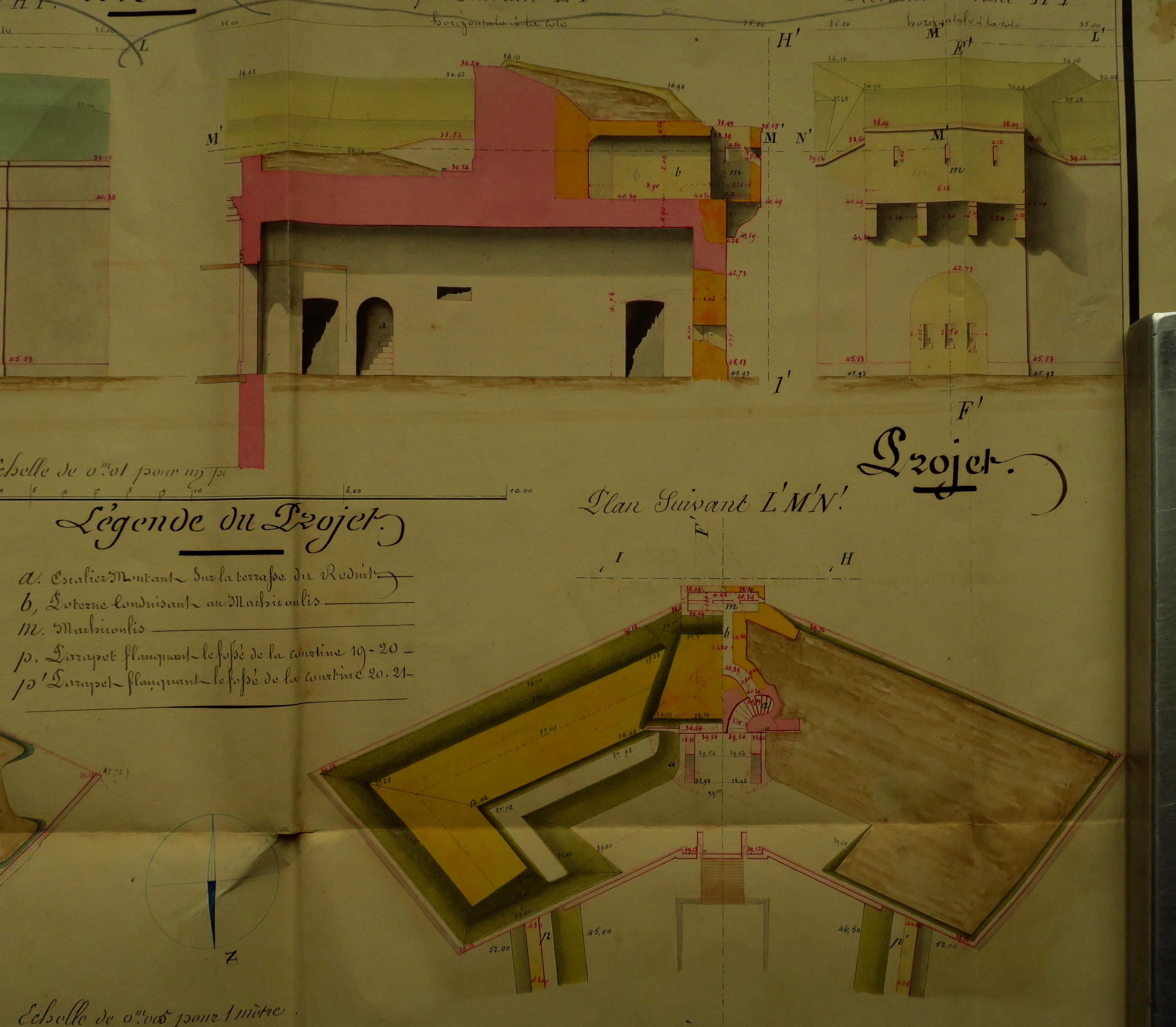 Service historique de la Défense, département Armée de Terre, Vincennes. Archives du Génie ; Article 8, Places françaises et d'Algérie : 1 VH 294, Place de Belle-Île-en-Mer, projets et dépenses annuels, 1854-1857. Direction du Génie de Brest, Place de Belle-Ile, feuille n° 3 des projets pour 1856-1857, 25 novembre 1855.