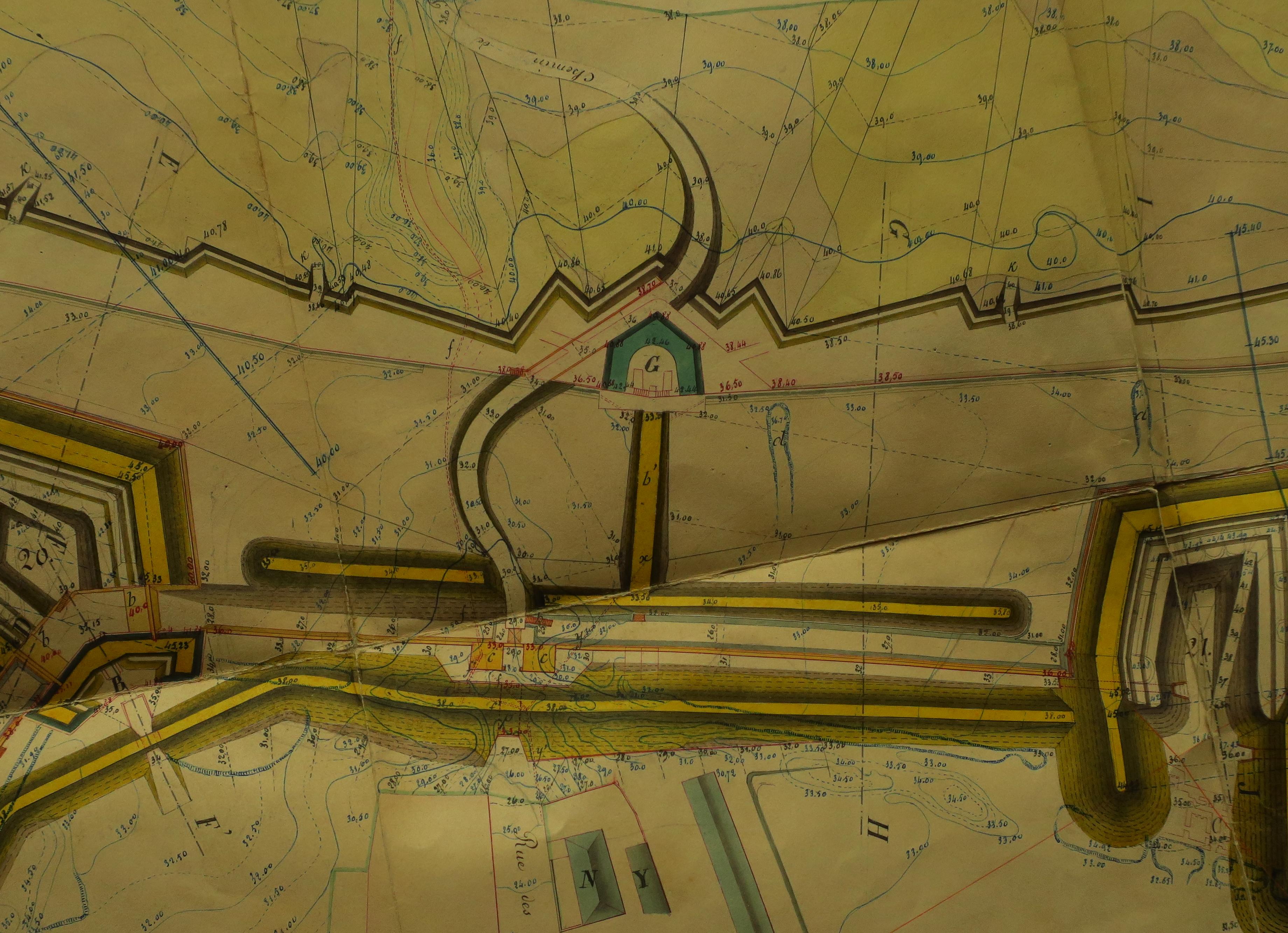 Service historique de la Défense, département Armée de Terre, Vincennes. Archives du Génie ; Article 8, Places françaises et d'Algérie : 1 VH 295, Place de Belle-Île-en-Mer, projets et dépenses annuels, 1858-1859. Direction du Génie de Brest, Place de Belle-Ile, feuille n° 13 des projets pour 1858-1859, 8 décembre 1858.