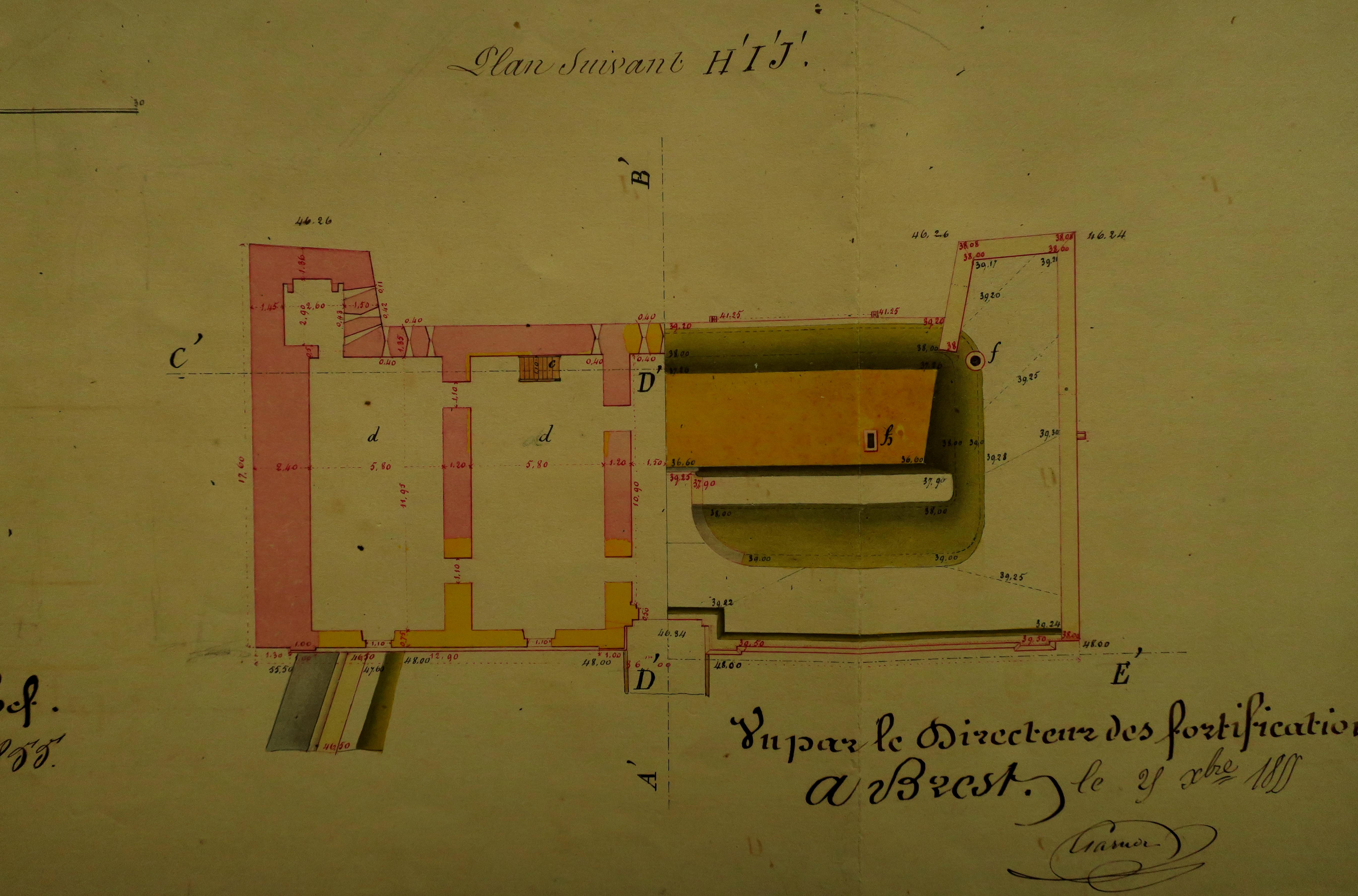Service historique de la Défense, département Armée de Terre, Vincennes. Archives du Génie ; Article 8, Places françaises et d'Algérie : 1 VH 294, Place de Belle-Île-en-Mer, projets et dépenses annuels, 1854-1857. Direction du Génie de Brest, Place de Belle-Ile, feuille n° 4 des projets pour 1856-1857, terminer le réduit C, 25 novembre 1855.