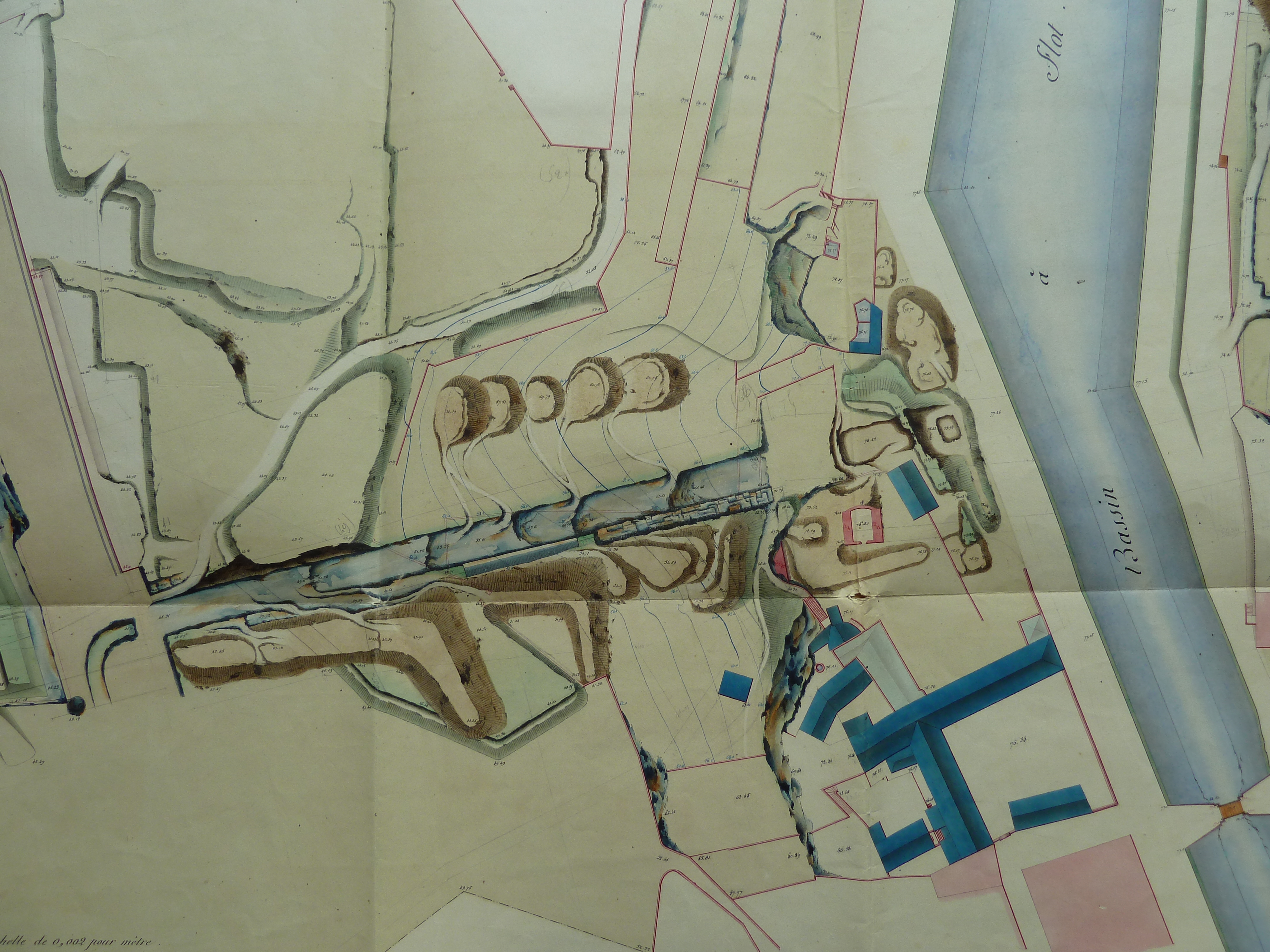 Service historique de la Défense, département Armée de Terre, Vincennes. Archives du Génie ; Article 8, Places françaises et d'Algérie : 1 VH 291, Place de Belle-Île-en-Mer, projets et dépenses annuels, 1843-1846. Direction du Génie de Nantes, Place de Belle-Ile, feuille n° 5 des projets pour 1845, état des lieux du front 21-22 ou C et Beausoleil, 16 août 1843.