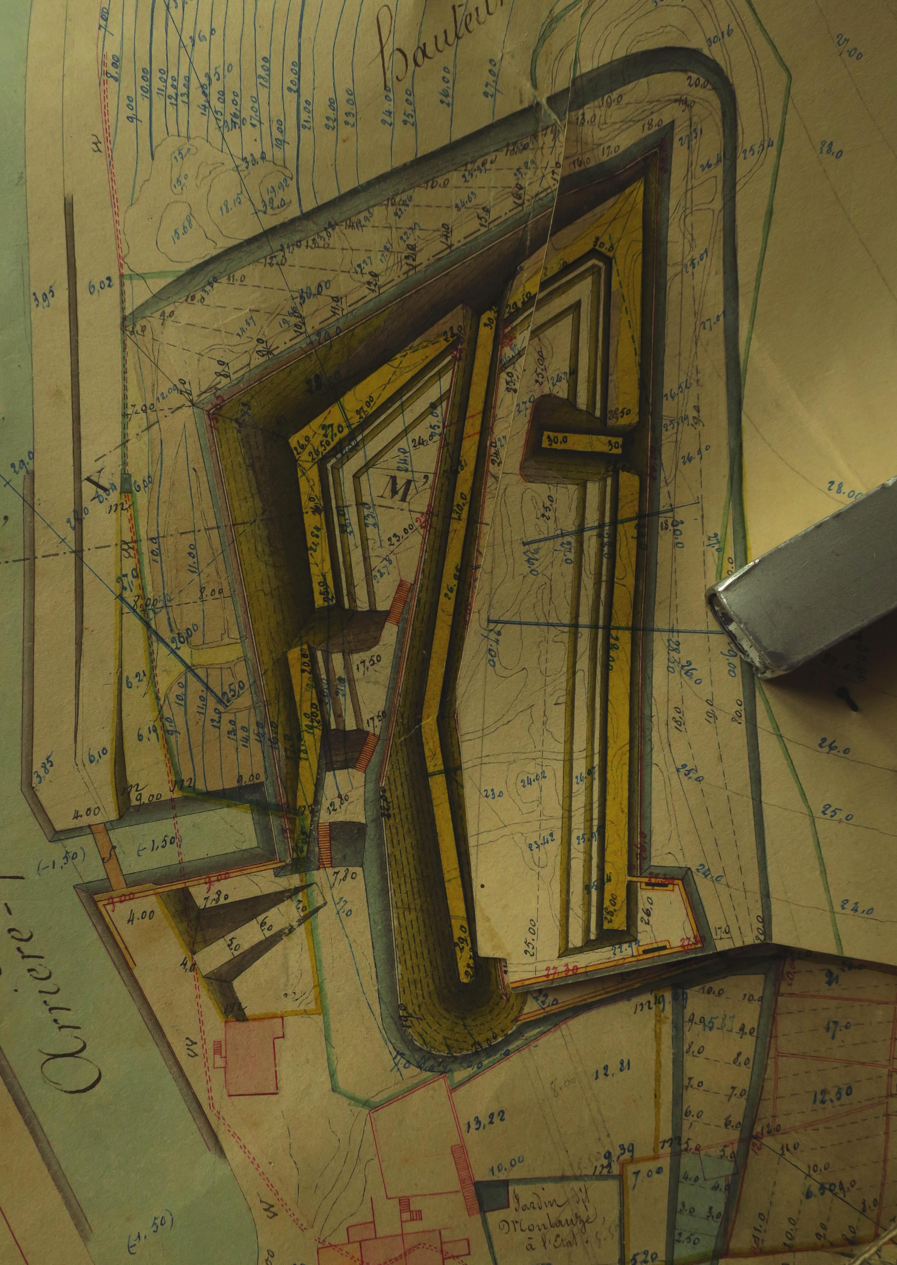 Service historique de la Défense, département Armée de Terre, Vincennes. Archives du Génie ; Article 8, Places françaises et d'Algérie : 1 VH 295, Place de Belle-Île-en-Mer, projets et dépenses annuels, 1858-1859. Direction du Génie de Brest, Place de Belle-Ile, feuille n° 13 des projets pour 1858-1859, 8 décembre 1858.