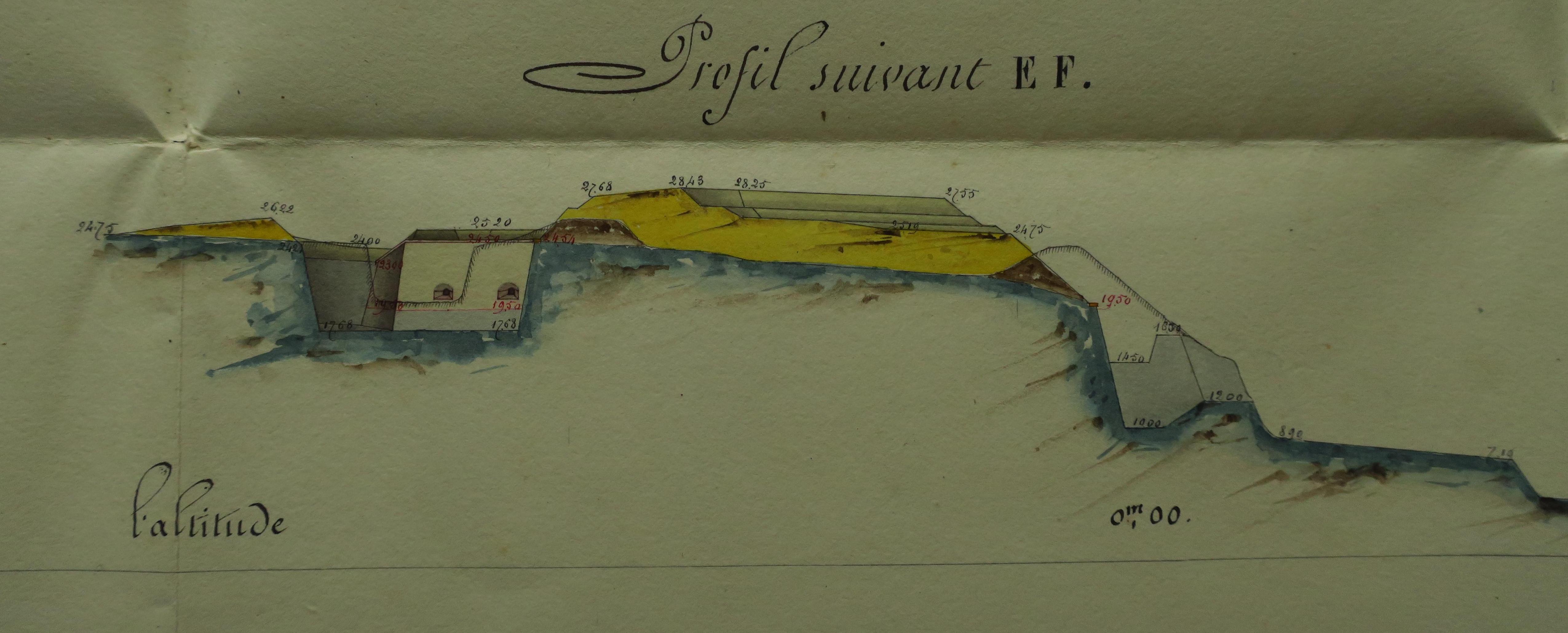 Service historique de la Défense, département Armée de Terre, Vincennes. Archives du Génie ; Article 8, Places françaises et d'Algérie : 1 VH 297, Place de Belle-Île-en-Mer, projets et dépenses annuels, 1862-1875. Direction du Génie de Brest, Place de Belle-Ile, feuille n° 3 des projets pour 1868-1869, achever l'ouvrage de Beau-Soleil, 27 avril 1868.