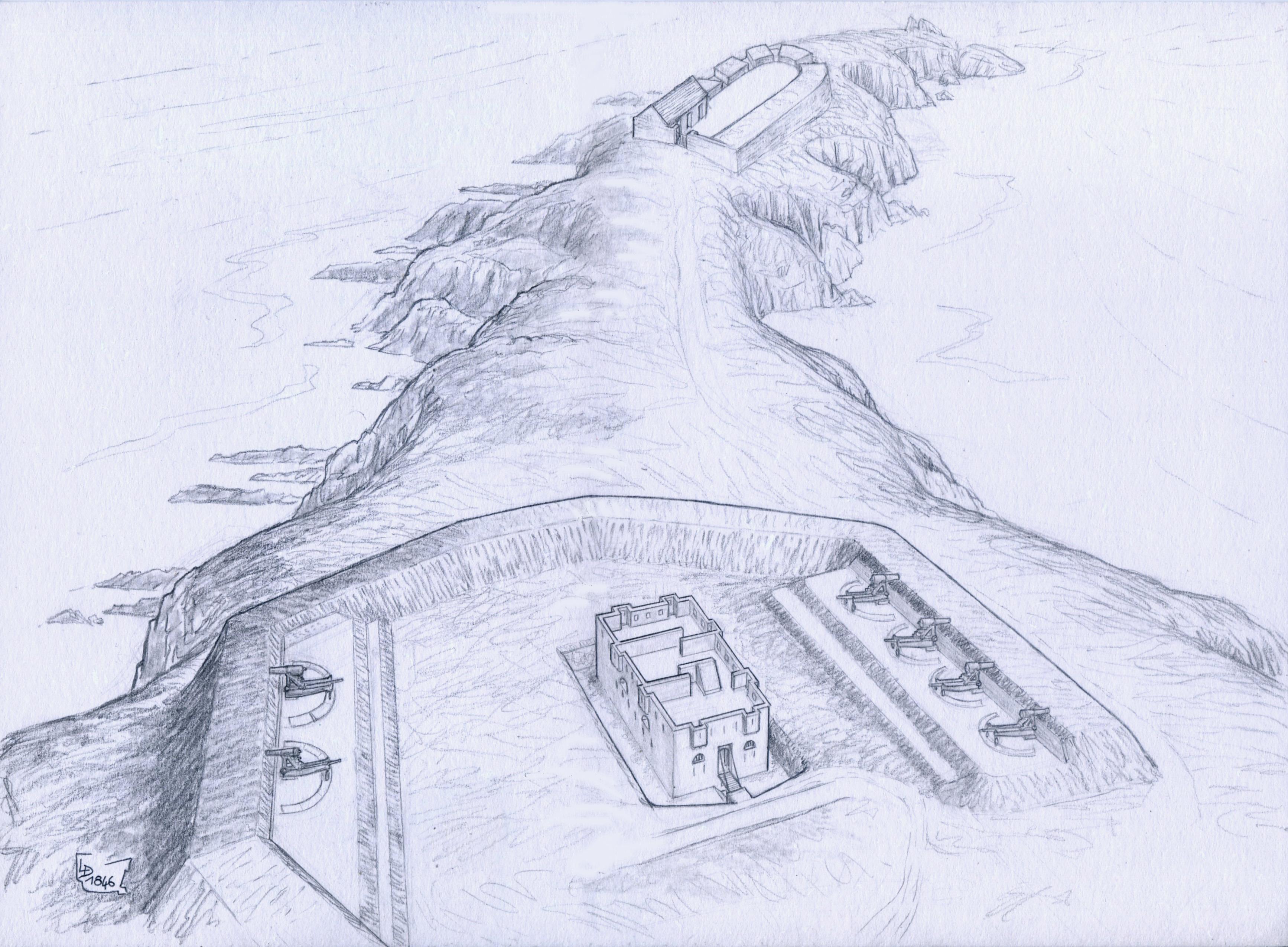Locmaria, batterie du Bugul, évocation vers 1870 avec l'artillerie en place, par Lionel Duigou.Immatriculation