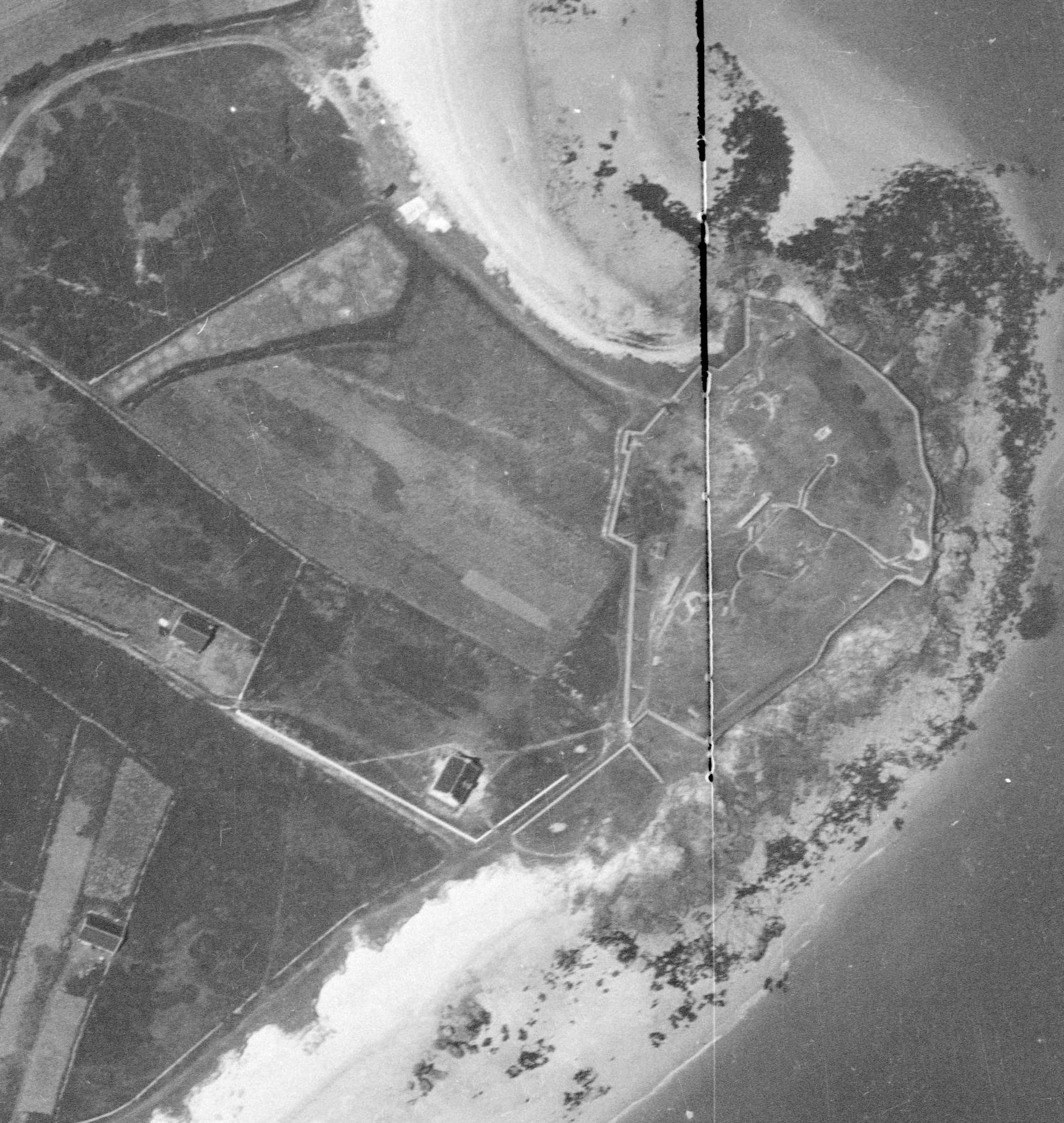 Saint-Pierre-Quiberon, batterie de Beg Rohu, orthophotographie, 1947, détail.Immatriculation