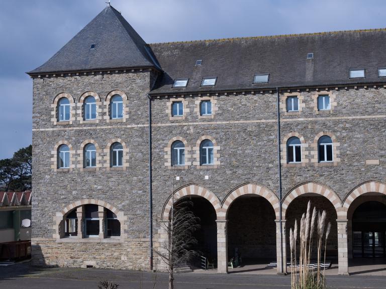 Tréguier : petit séminaire actuellement lycée Joseph Savina, aile nord comprenant le préau avec ses arcades, la scène et la salle des conférencesImmatriculation