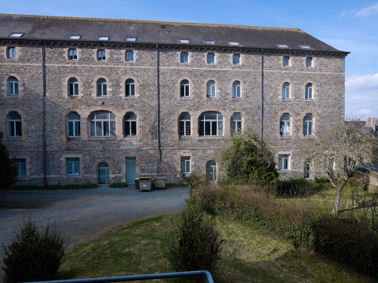 Tréguier : petit séminaire actuellement lycée Joseph Savina, cour nord. Autour de la petite cour se dressent des salles d’études ; au sud, la chapelle et l’appartement de l’évêque. L’accès à cette cour se faisait autrefois uniquement par le petit passage vouté aménagé sous l’abside de la chapelleImmatriculation