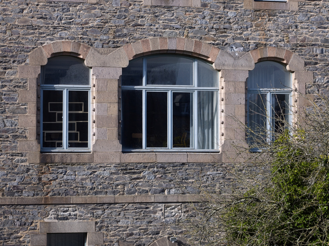 Tréguier : petit séminaire actuellement lycée Joseph Savina, aile nord, détail de trois fenêtres de style néo-romanImmatriculation