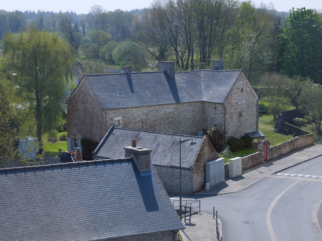 Le presbytère depuis le clocher de l'Église de Vildé-Guingalan.Immatriculation