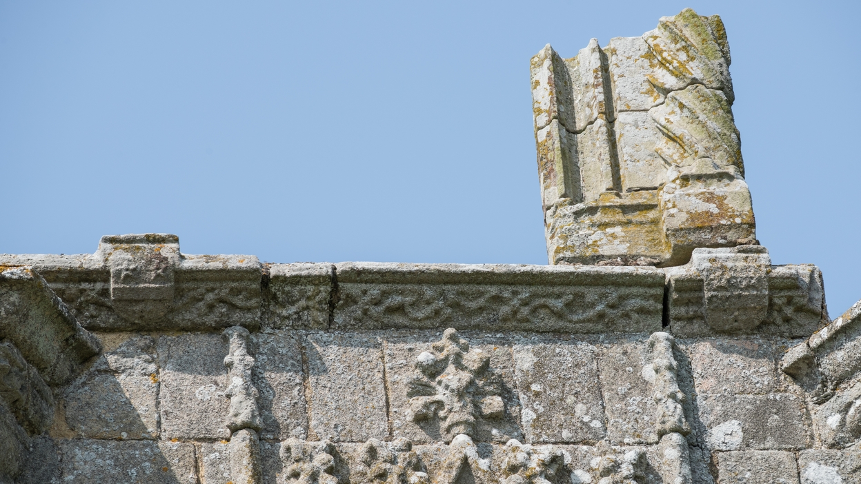 La château, partie haute de la tour d'escalier : corniche sculpté portant les armoiries de la famille FerréImmatriculation