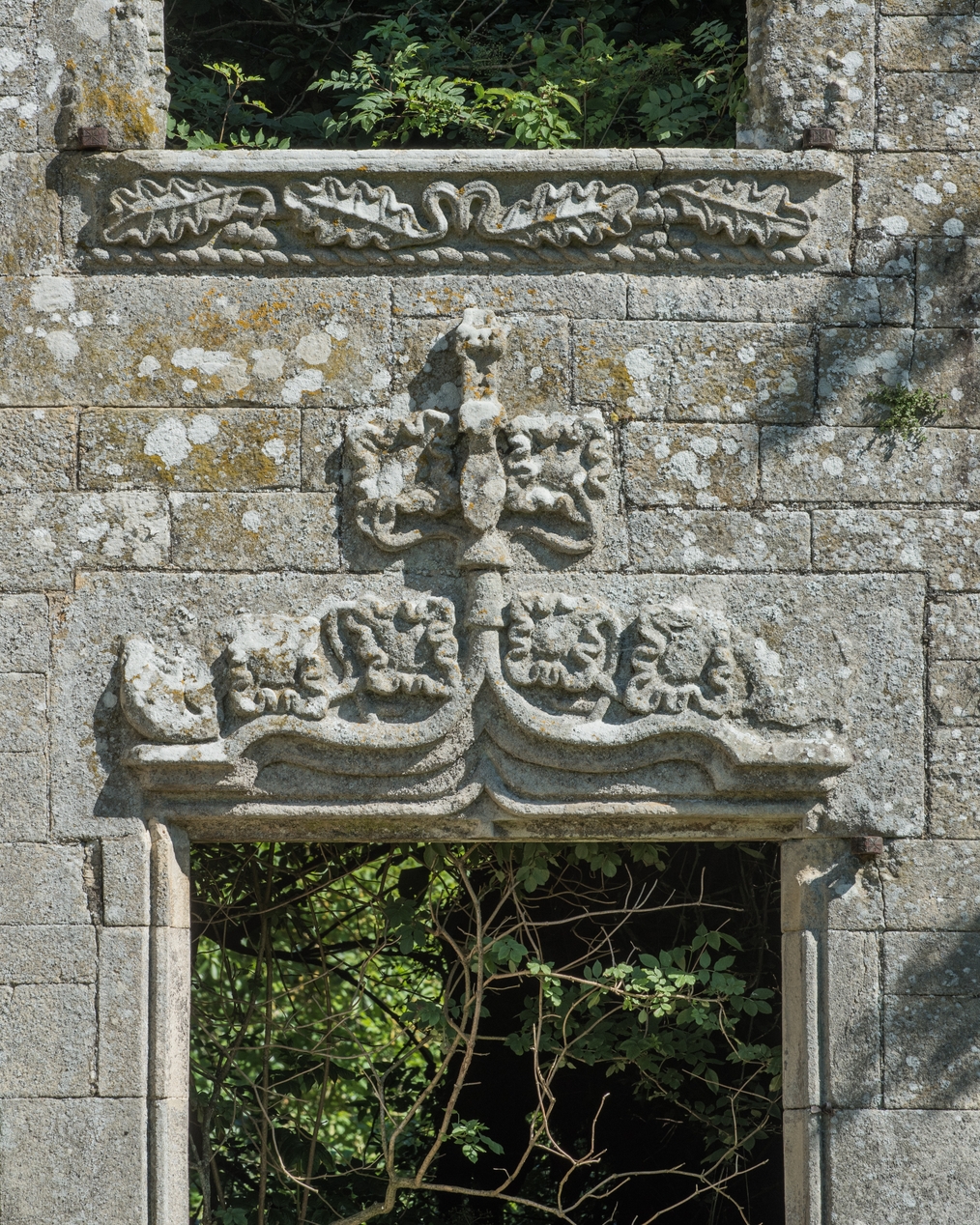 Fenêtre est du rez-de-chaussée, détail de l'accolade et du décor sculptéImmatriculation