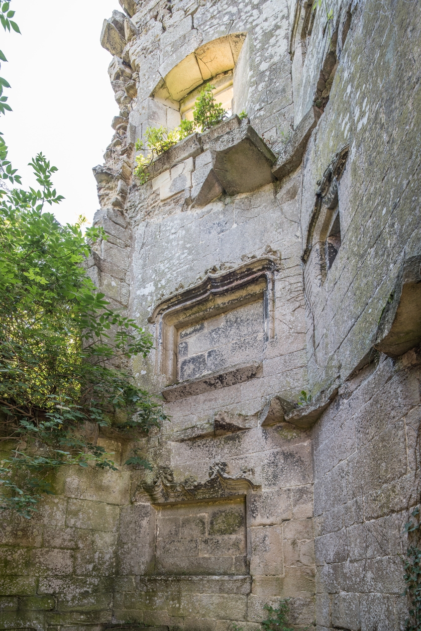 Le château : vue intérieure de la tour d'escalier, aménagements de repos aux différents niveauxImmatriculation