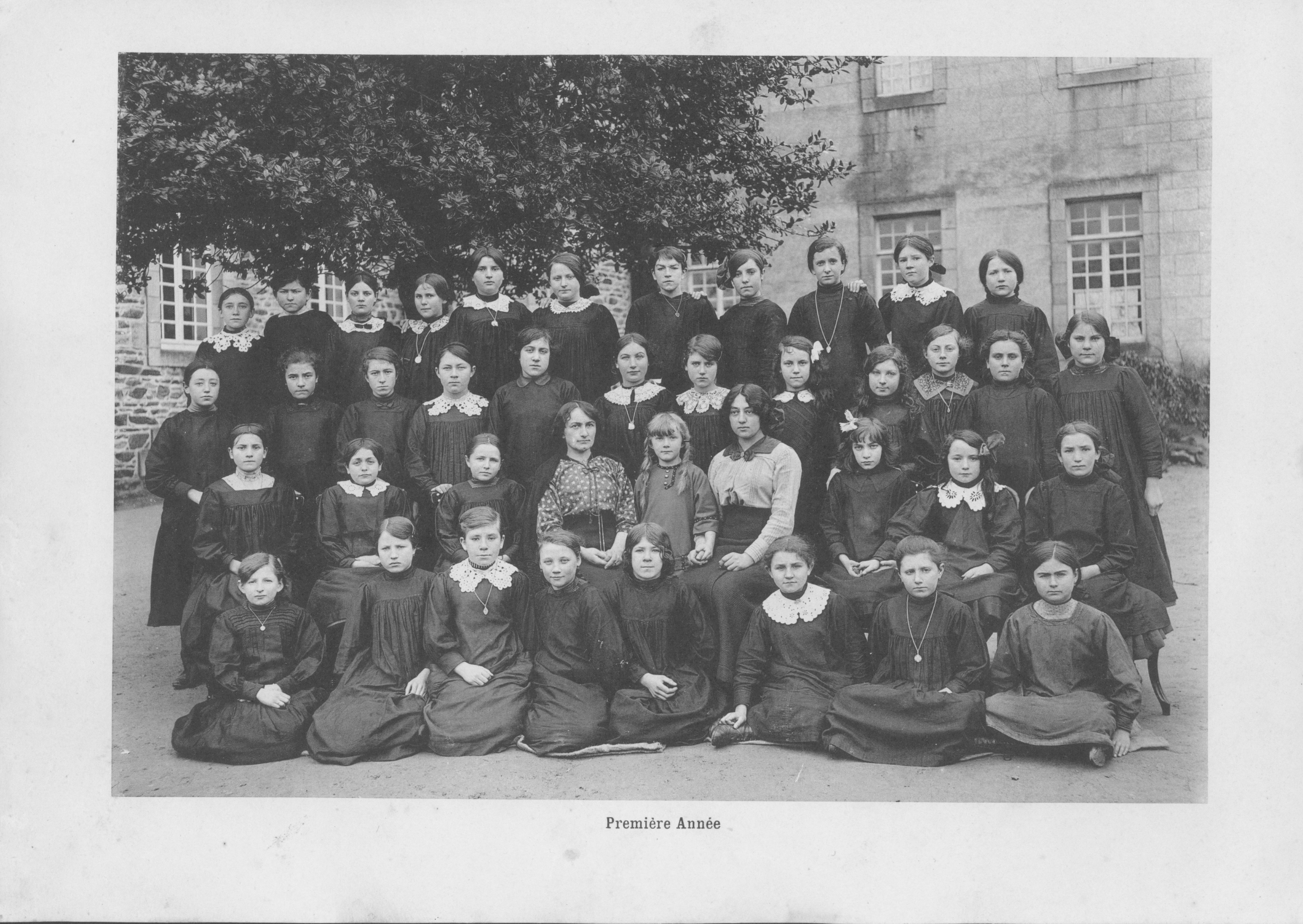 Le couvent des Paulines devenu école de filles, photographie de 1914 (collection particulière). Classe de première annéeImmatriculation