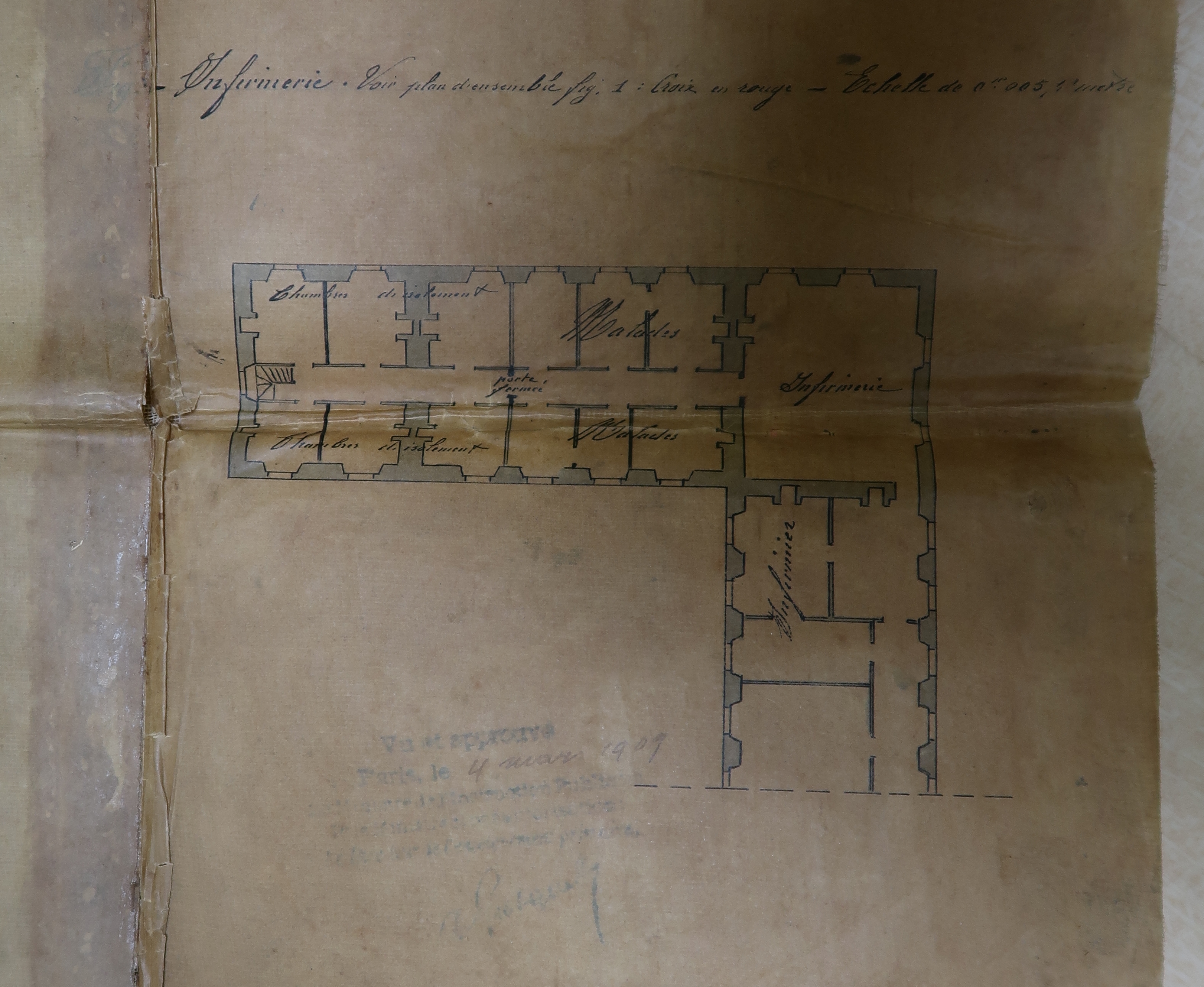 Tréguier : plan du projet de création de l'école primaire supérieure dans les locaux de l'ancien petit séminaire (infirmerie), 12 février 1908 (Archives municipales de Tréguier, 4M2)Immatriculation