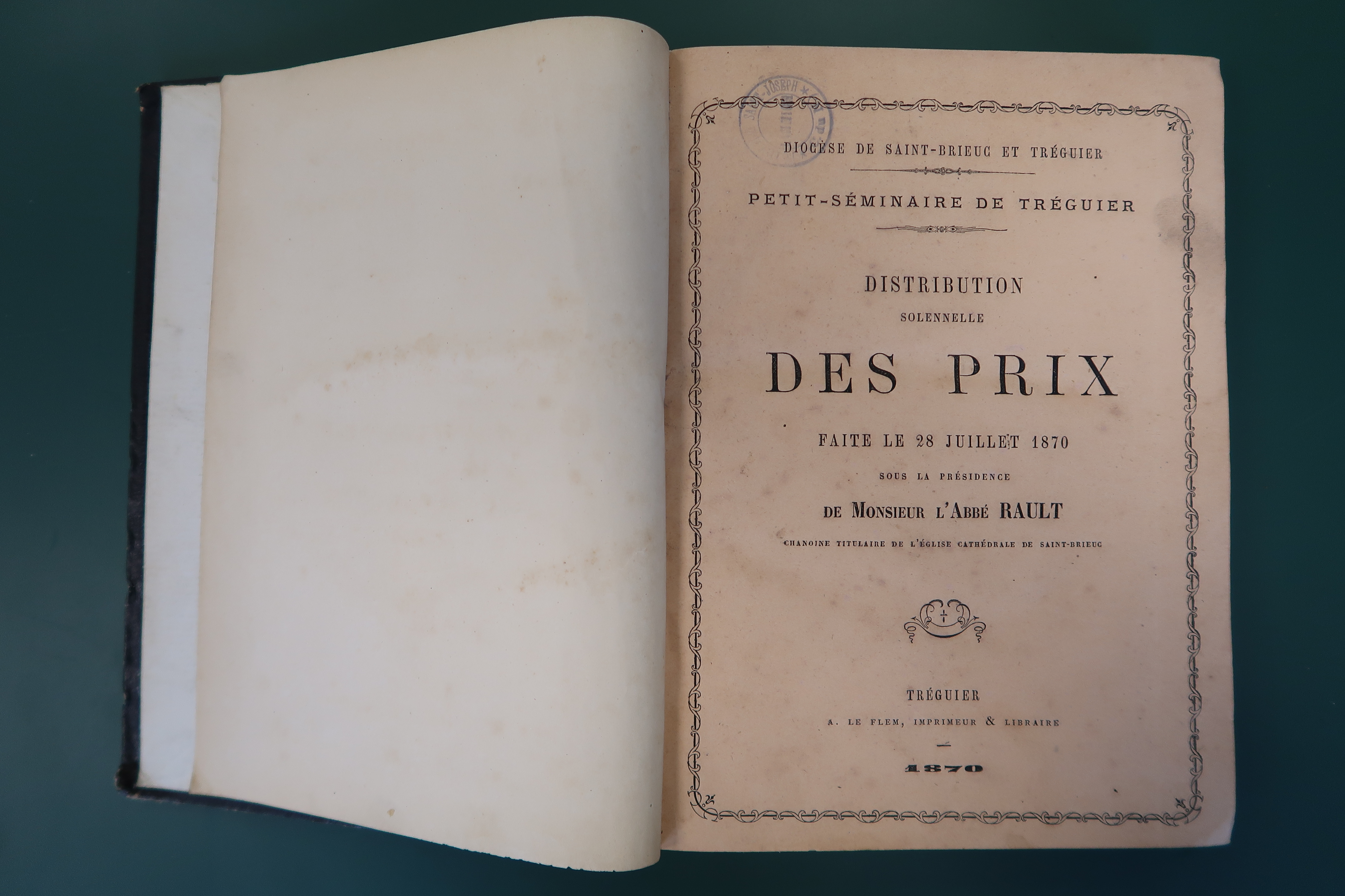 Tréguier : petit séminaire, distribution solennelle des prix, 1870 (Collection de la bibliothèque du collège Saint-Joseph de Lannion)Immatriculation