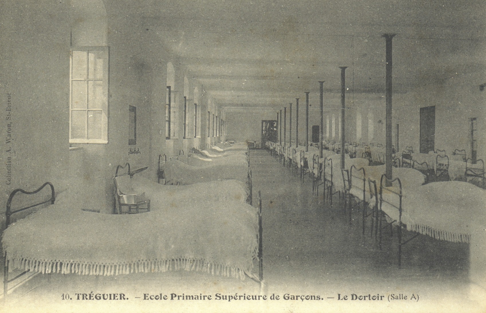 Tréguier : petit séminaire puis école primaire supérieure de garçons (le dortoir), carte postale (collection iconographique réunie par Michel Le Cam, ancien professeur au Lycée Joseph Savina)Immatriculation