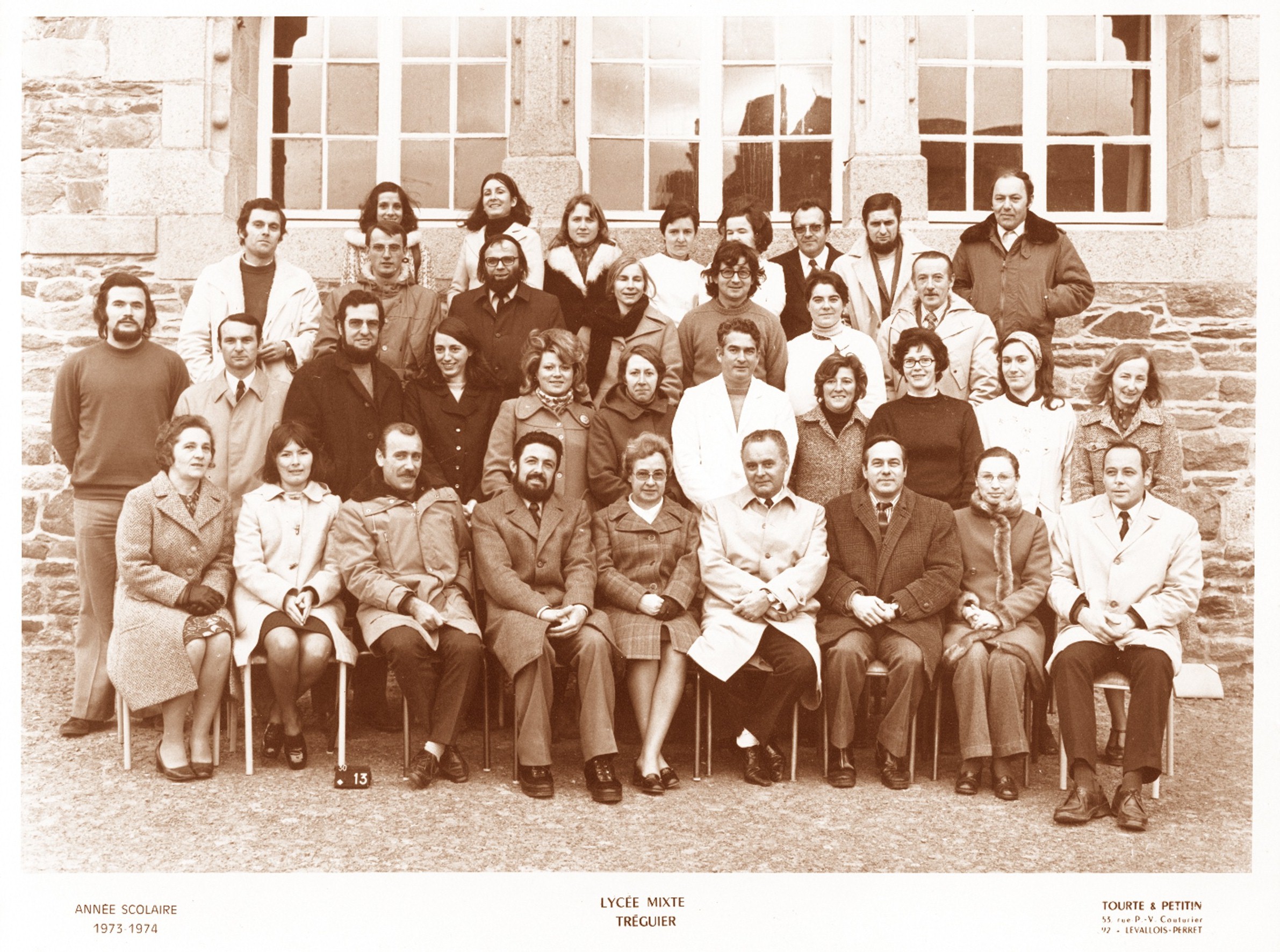 Tréguier : lycée mixte, les professeurs et l'administration, année scolaire 1973-1974, photographie de Tourte et Petitin (collection iconographique réunie par Michel Le Cam, ancien professeur au Lycée Joseph Savina)Immatriculation