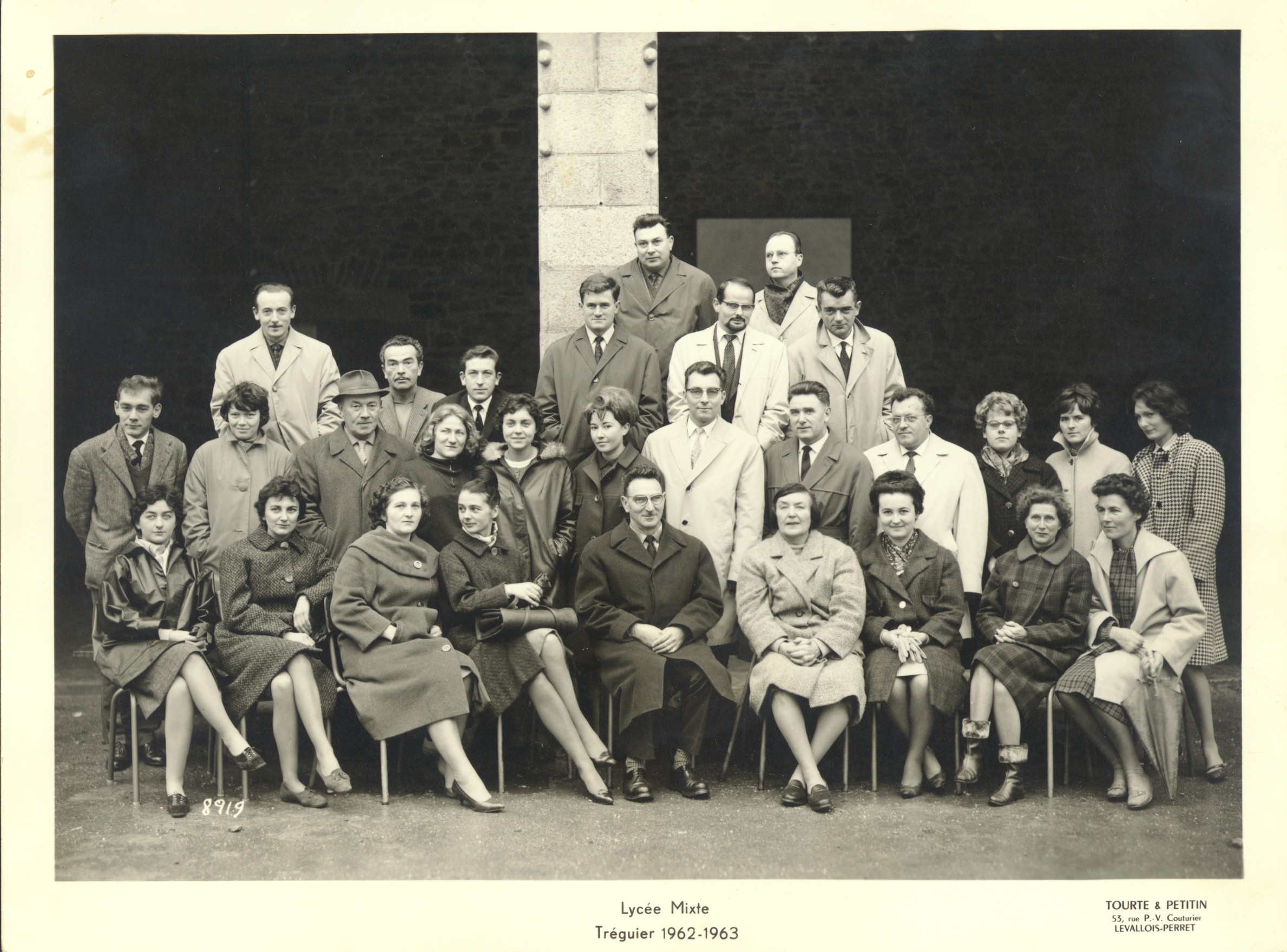 Tréguier : lycée mixte, les professeurs et l'administration, année scolaire 1962-1963, photographie de Tourte et Petitin (collection iconographique réunie par Michel Le Cam, ancien professeur au Lycée Joseph Savina)Immatriculation