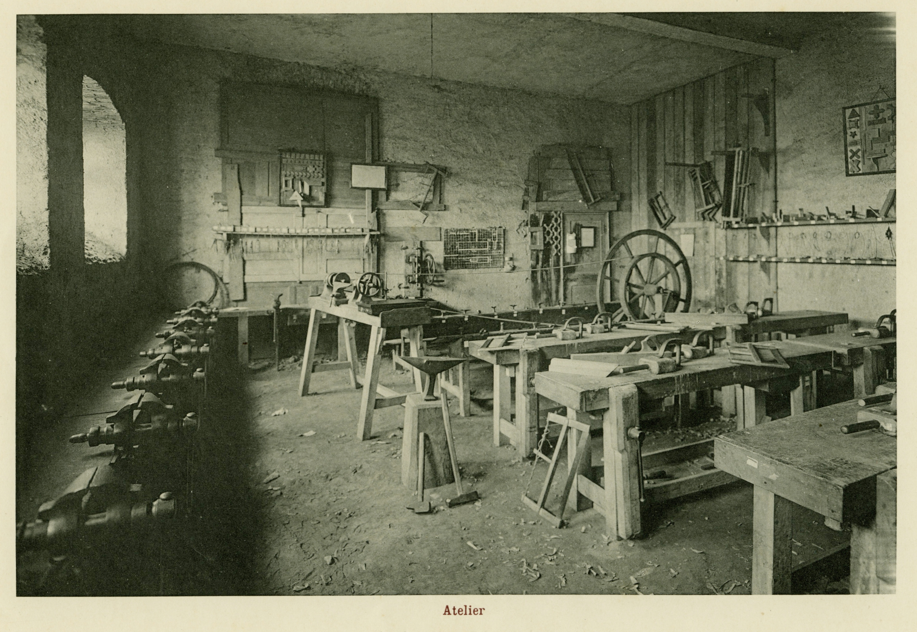Tréguier : petit séminaire devenu école primaire supérieure de garçons, atelier, plaquette de présentation de l'école, année scolaire 1913-1914 (collection iconographique réunie par Michel Le Cam, ancien professeur au Lycée Joseph Savina)Immatriculation