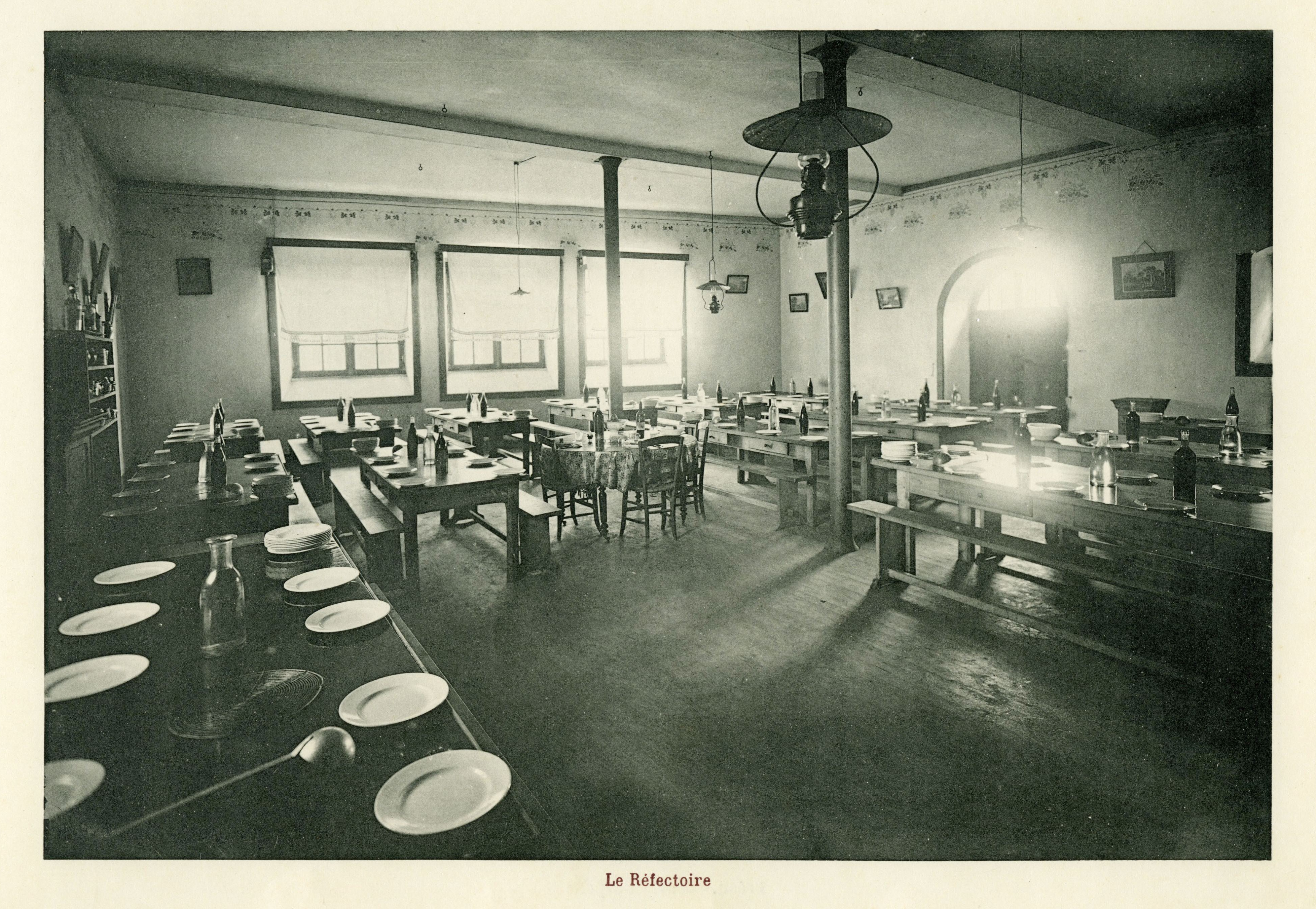 Tréguier : petit séminaire devenu école primaire supérieure de garçons, réfectoire, plaquette de présentation de l'école, année scolaire 1913-1914 (collection iconographique réunie par Michel Le Cam, ancien professeur au Lycée Joseph Savina)Immatriculation