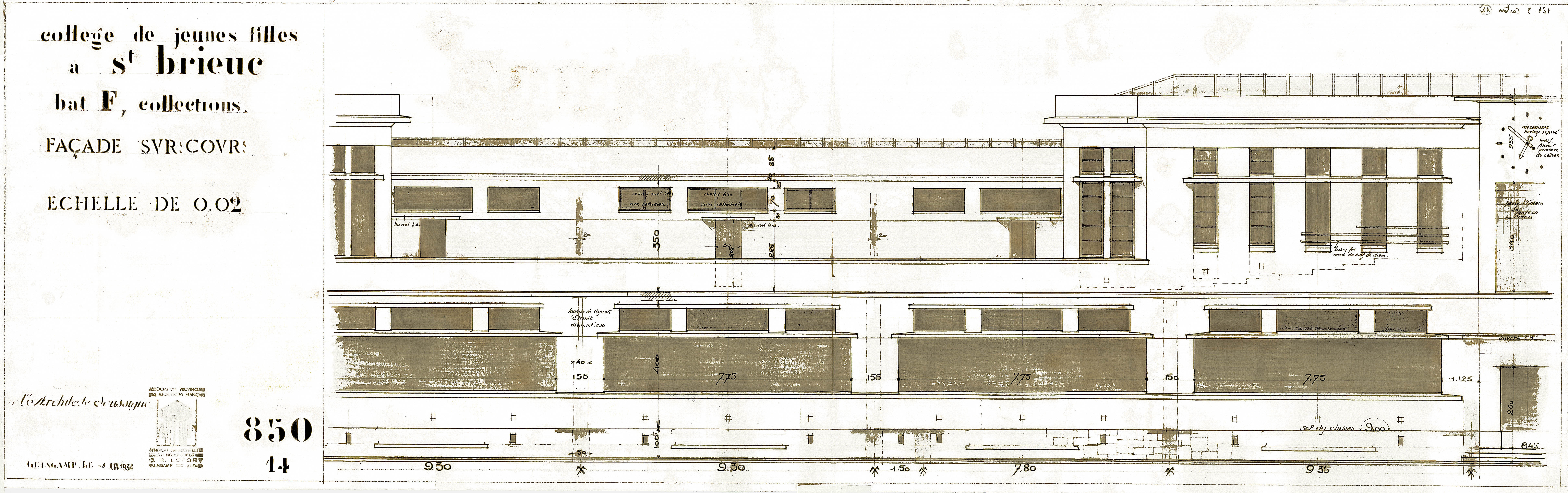 Élévation façade sur cour, G-R Lefort, 1934Immatriculation