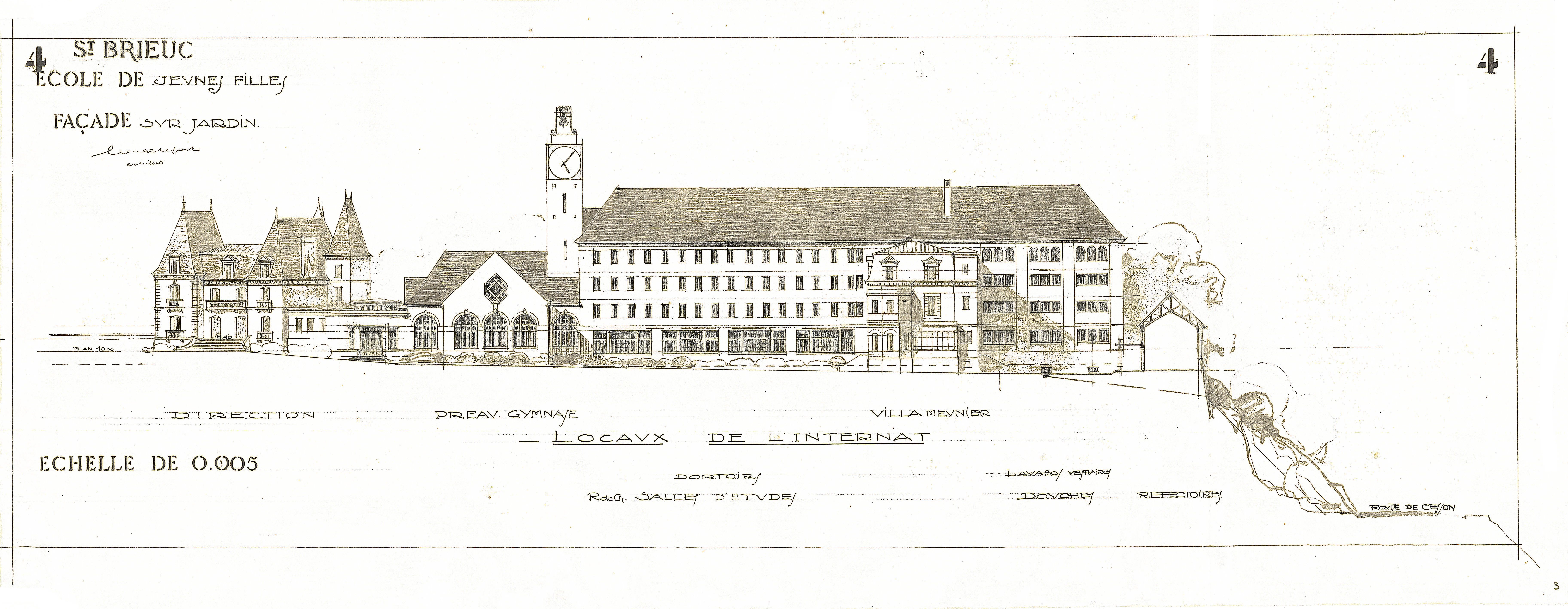 Locaux de l'internat, esquisses (ca.1931). Le projet a connu des évolutions.Immatriculation