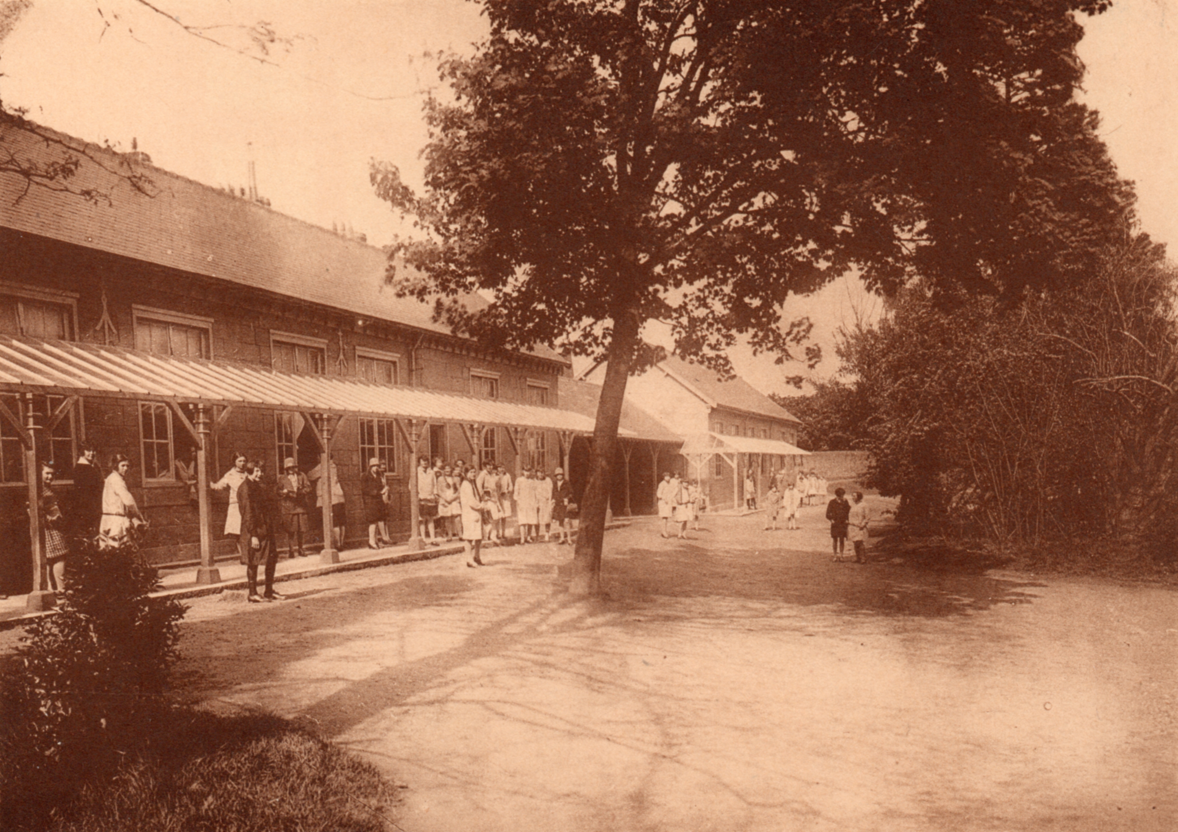 Cour de récréation, bâtiments et galeries dans les années 1920 (aujourd'hui disparus).Immatriculation