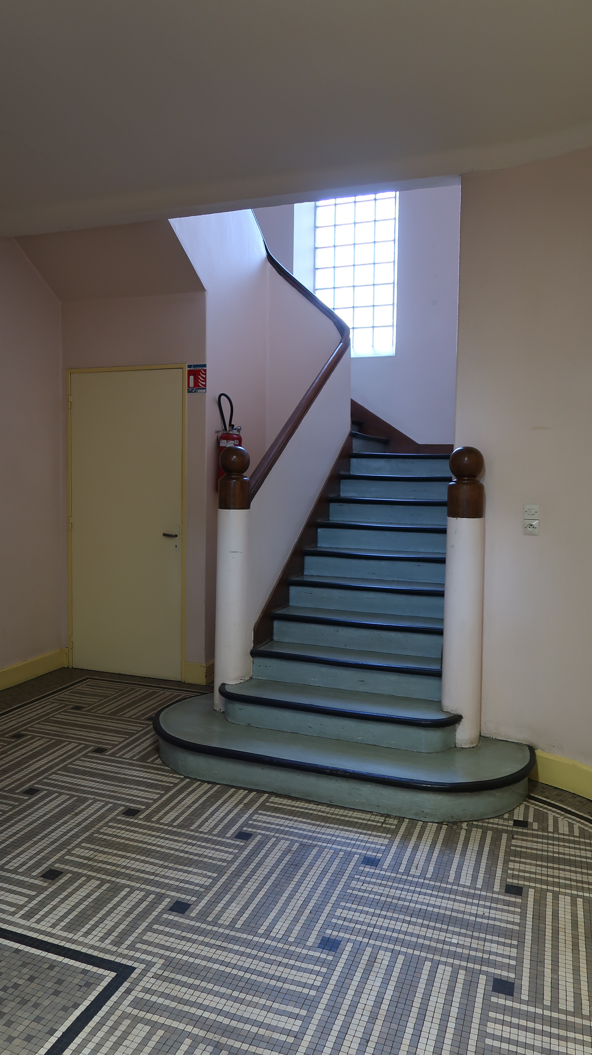 Cage d'escalier et sols de l'intendance (anciennement économat) (G-R Lefort, architecte, 1936-1938).Immatriculation