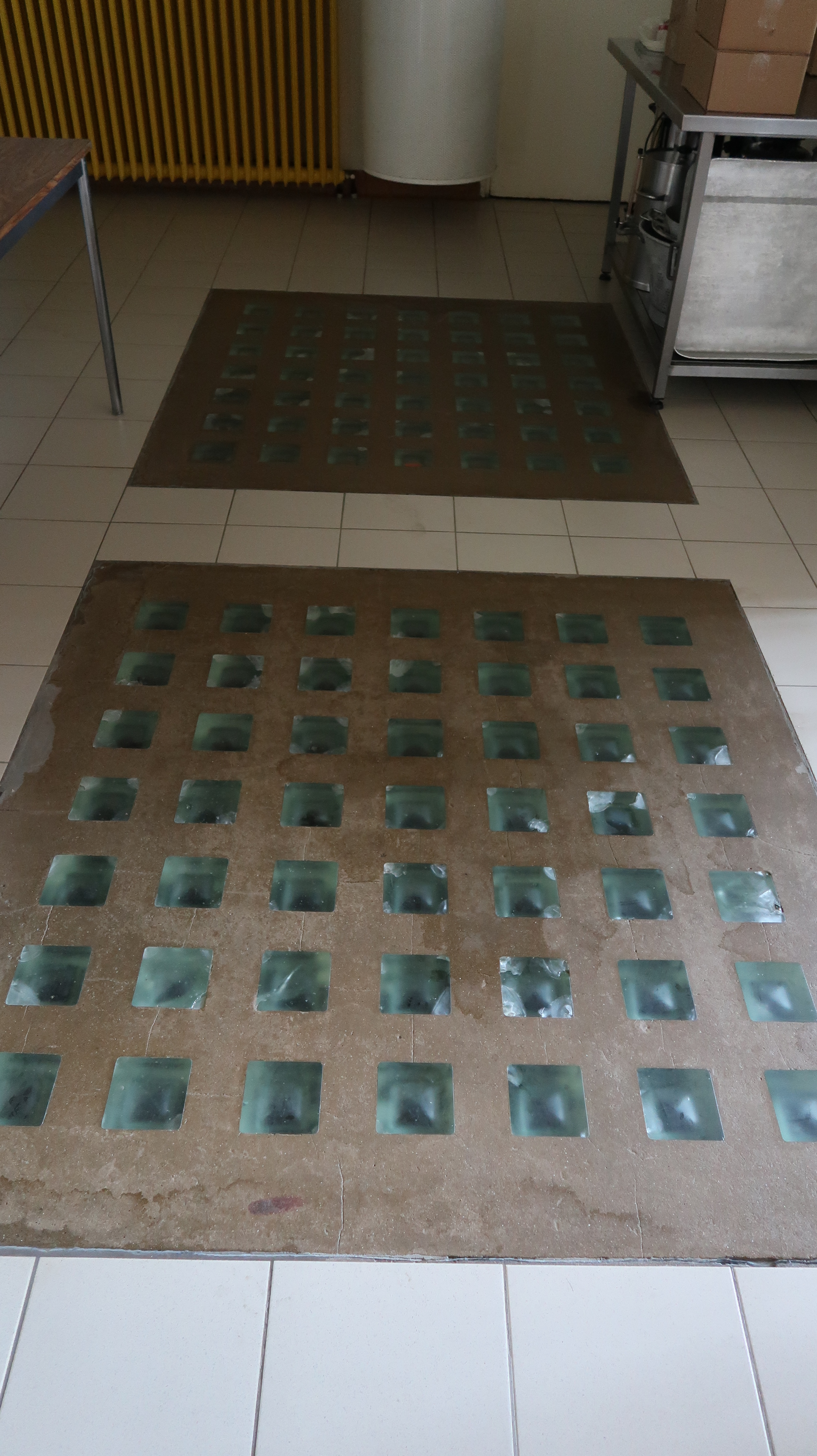 Système d'éclairage des caves de la cuisine : béton et pavés de verre (G-R. Lefort, architecte, 1936-1938).Immatriculation