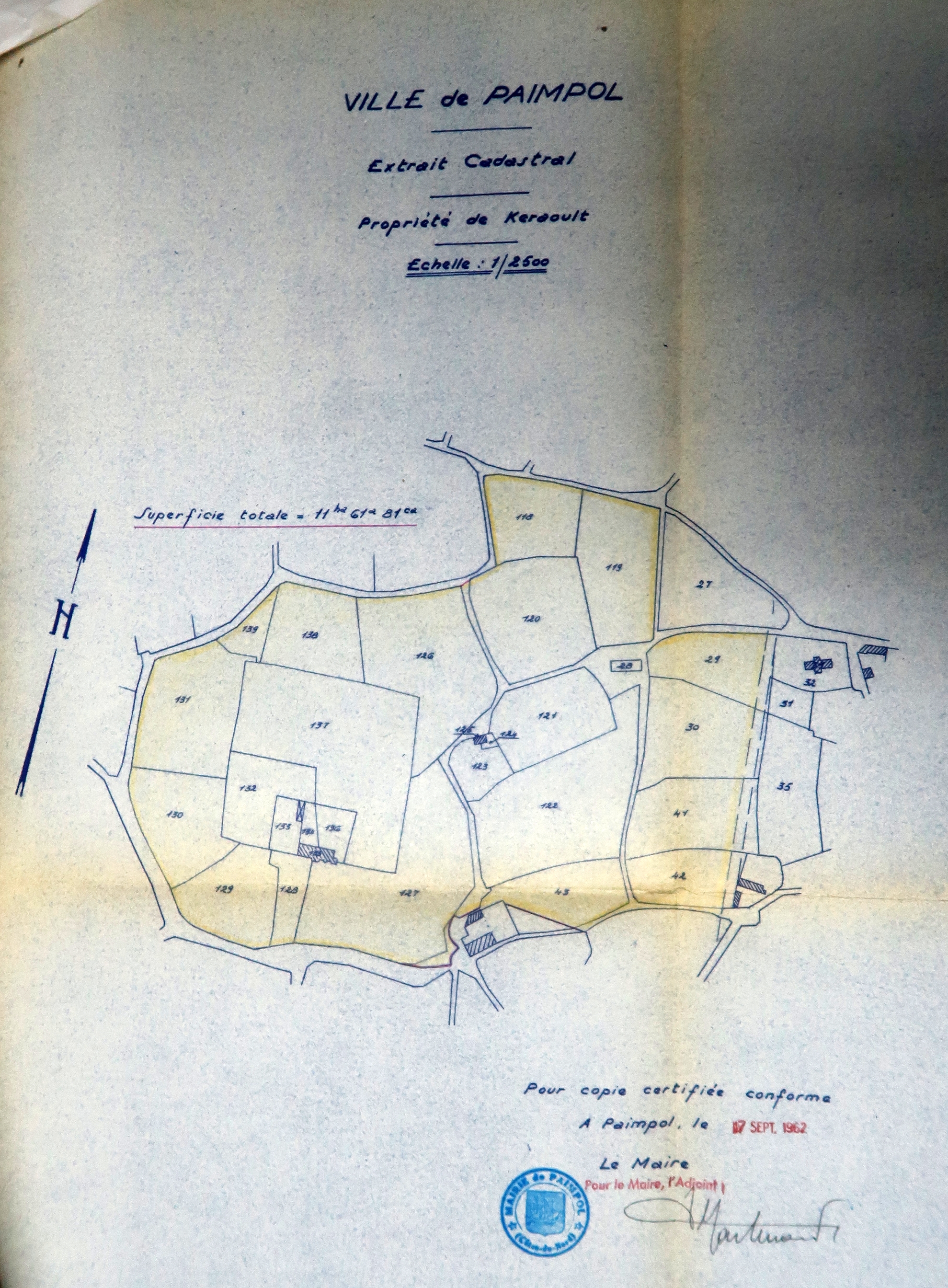 Ville de Paimpol. Extrait cadastral. Propriété de Keraoult. Certifié conforme le 17 septembre 1962.