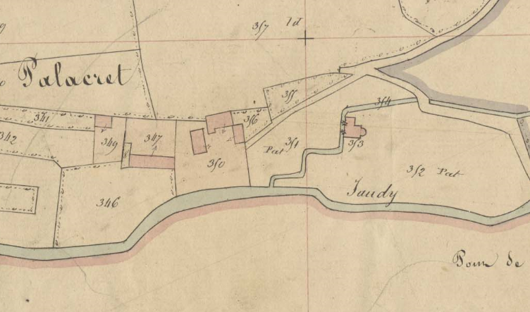 Le moulin du Palacret en 1849. Extrait du cadastre ancien, section A (A.D. 22, série 3 P 310)Immatriculation