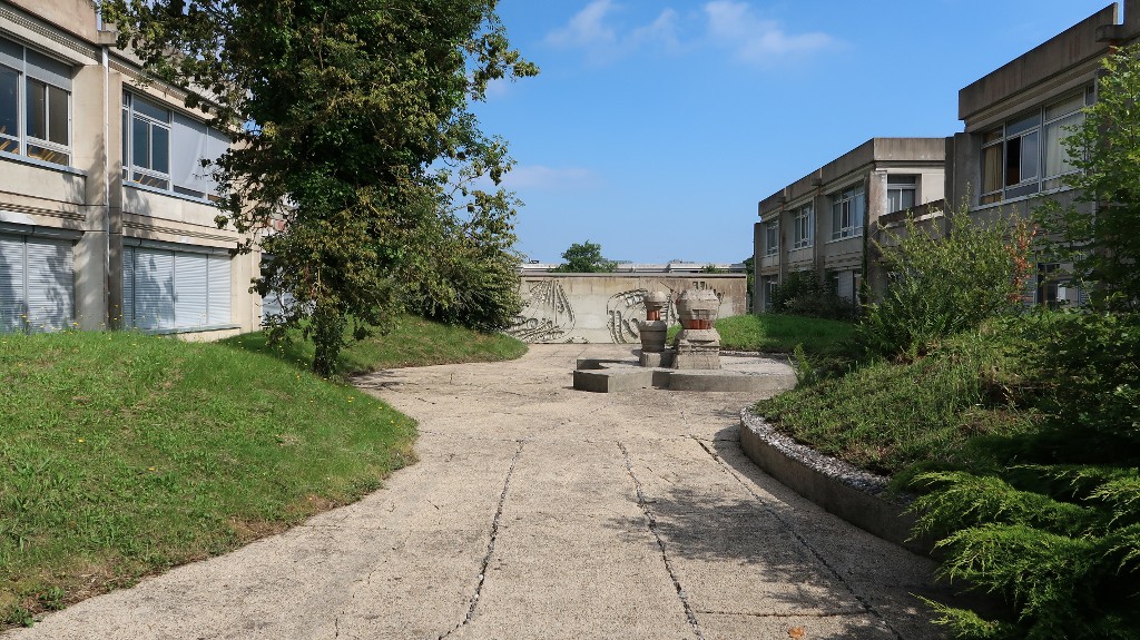 Cour intérieure de l'externat, façades sur cour des aile ouest (à gauche) et est (à droite).Immatriculation