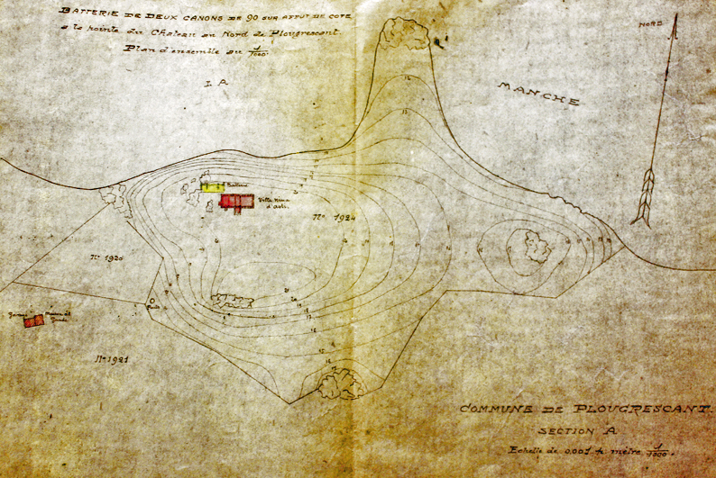 Extrait du cadastre avec l’implantation du Poste de Défense Contre les Sous-Marins (source : Service Historique de la Défense, Cherbourg)Immatriculation