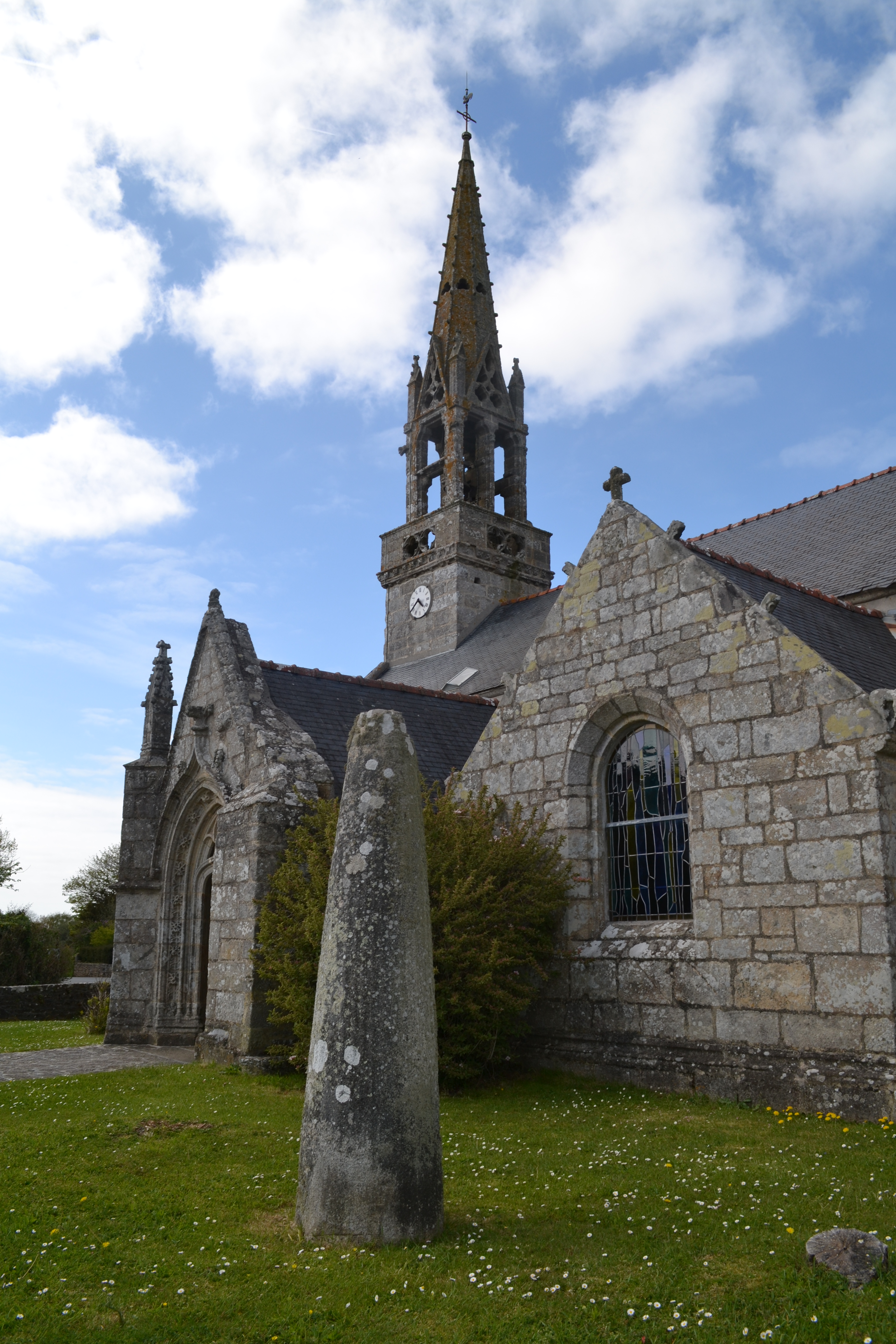 Stèle protohistorique dite "fuseau de goulien", vue générale dans son environnement. (2018)Immatriculation