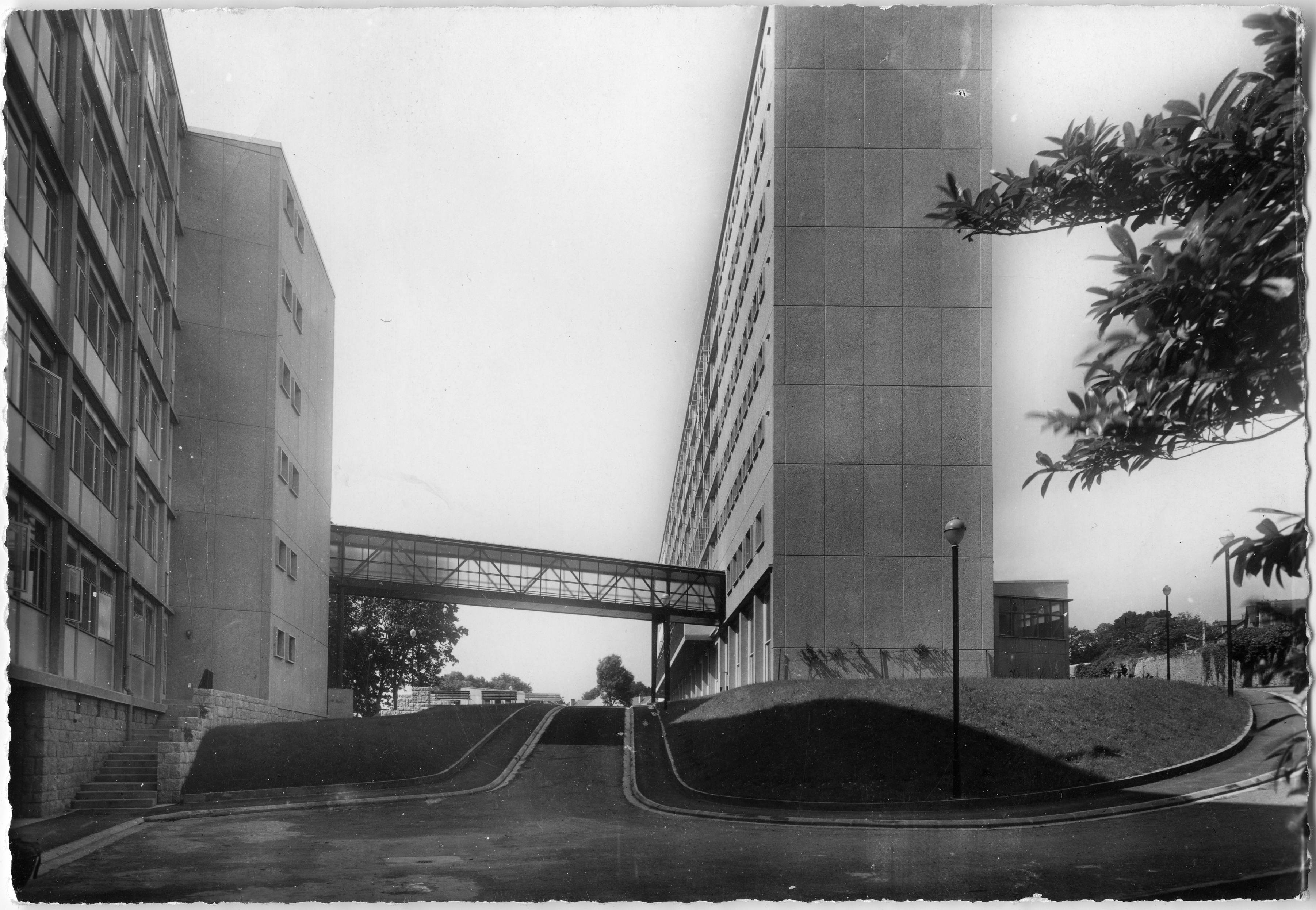 Les deux internats (bâtiments B et D), à l'origine reliés par une passerelleImmatriculation