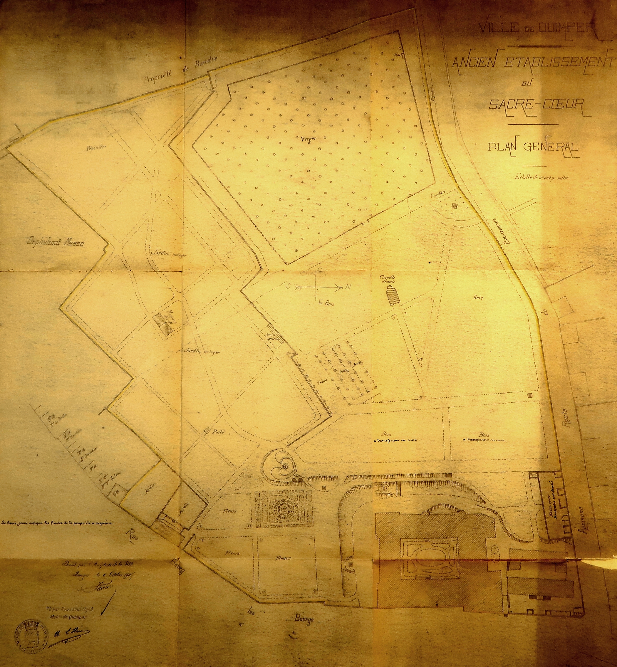 Plan général de "l'établissement du Sacré-Cœur", dressé par l'architecte de la ville de Quimper, le 6 octobre 1907Immatriculation