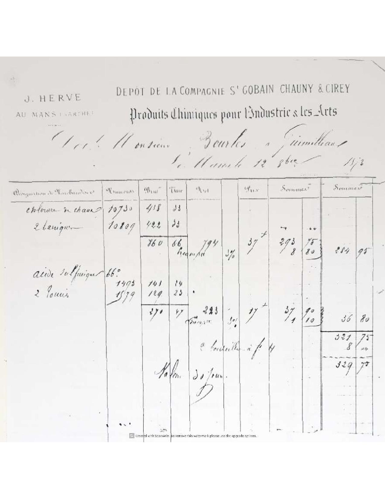 Facture de produits chimiques pour l'Industrie et les Arts, 1873Immatriculation